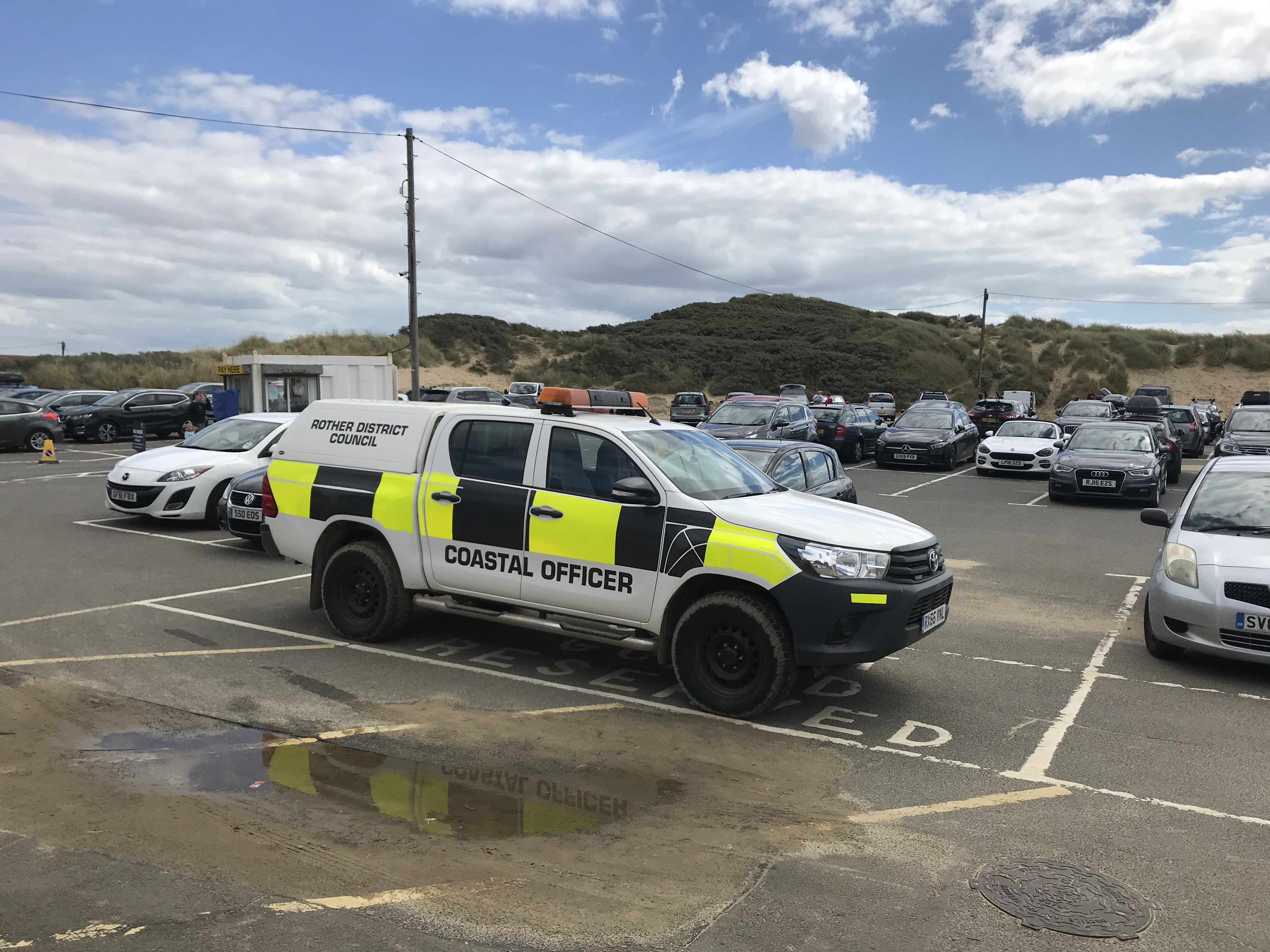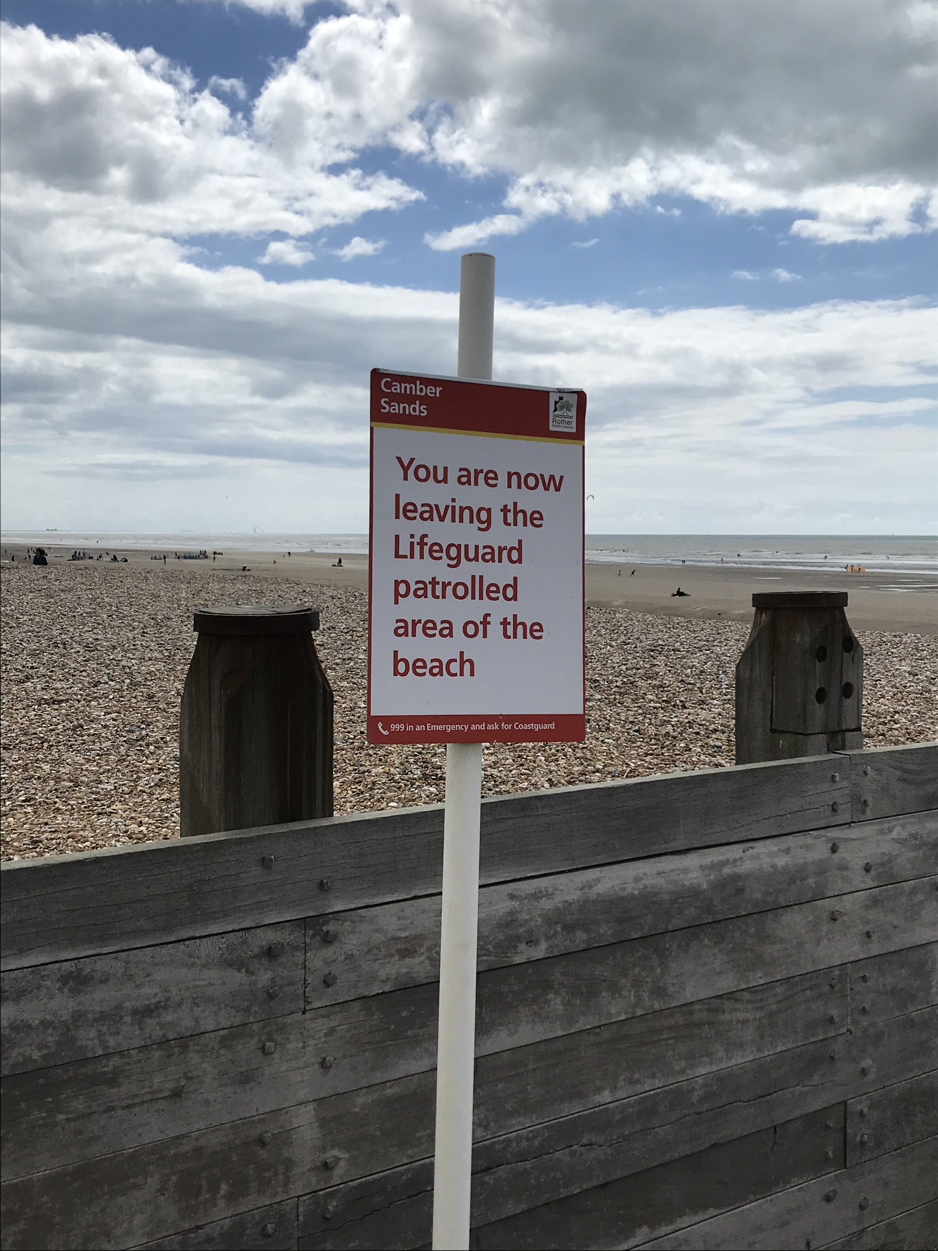 Camber, however, was nearly the complete opposite, with very few cars in the two big car parks and very few adults or children on the beach – though a few could be seen in the distance as it was around low tide, and there was a lifeguard vehicle parked right on the edge of the sea between the two flags identifying the safe bathing area.