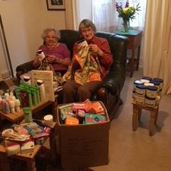 St Mary’s Knitting Group has so far amassed 48 Dignity Bags seen pictured packed in banana boxes, ready to be dispatched to refugees in Syria, via Samara’s Aid Appeal. Hopefully 12 more will be put together by the time they have to go off to the depot in Worthing on January 25, ready for shipment to the refugee camps.