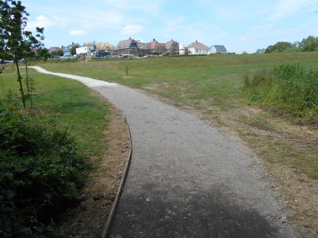 However the ditch which divides Tilling Green from Valley Park and goes round to the River Tillingham is properly maintained. The footpath from the new bridge up into Valley Park is also being concreted over as it is unlit and residents complain that it becomes a sea of mud after any rainfall. The ditch, known as the Pottingfield Petty Sewer, used to drain surface water off to Gibbet Marsh, but became blocked by building work in the Brickyard, and no-one takes responsibility for its upkeep.