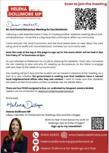 The senior officer responsible for policing in Rye will be answering questions on anti-social behaviour this Friday 12 December. Chief Inspector Simon Yates is taking part in a meeting at the Tilling Green Community Centre from 5pm to 7pm.