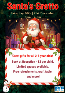 Santa is visiting Rye Leisure Centre on Saturday and Sunday 20-21 December from 2pm to 4pm.