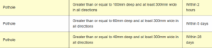 Here’s the criteria Easy Sussex Highways use for assessing how soon potholes are repaired.