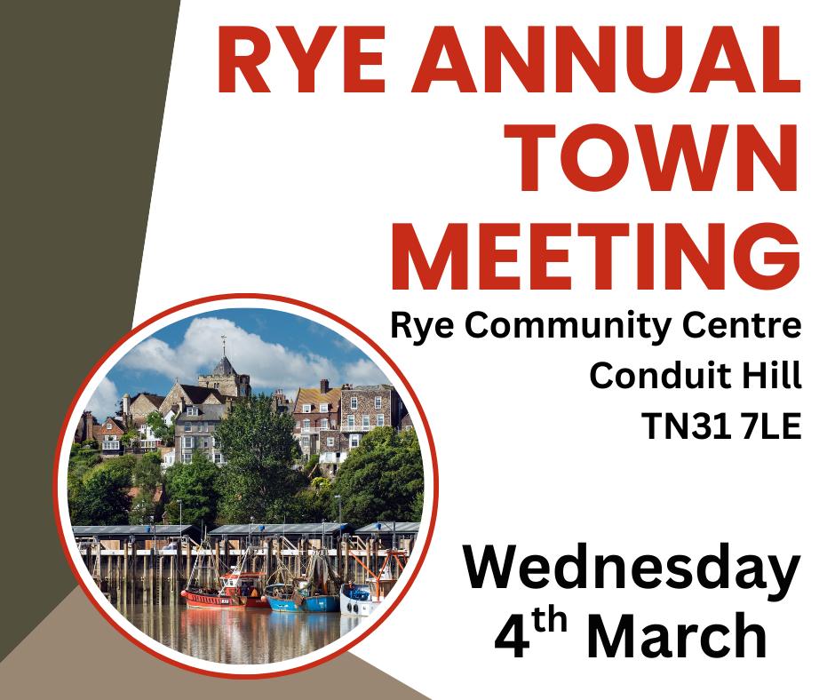 Rye’s annual town meeting is on Wednesday 4 March. This year it will be in the Rye Community Centre on Conduit Hill from 6.30pm.