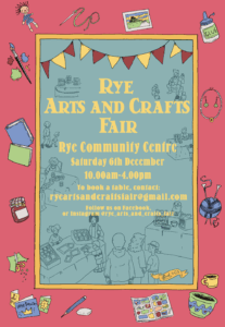 A reminder that our Christmas arts and crafts fair, will be on Saturday 6 December from 10am to 4pm at Rye Community Centre.