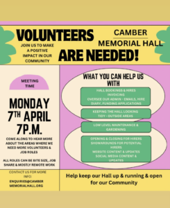 The meeting at the hall on Monday, April 7 at 7pm will discuss some of the roles which need filling – including gardening, admin, booking, social media, and website maintenance.