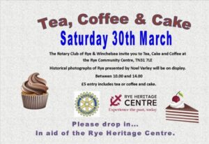 It’s been organised by the Rotary Club of Rye & Winchelsea in aid of Rye Heritage Centre. You’ll be able to talk to Noel, and see some of his vast collection of photographs. It’s £5 entry to include tea, coffee and cake.