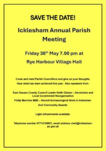 Meanwhile IPC’s annual parish meeting takes place next week at Rye Harbour Village Hall –  7-8pm on Friday, May 30.