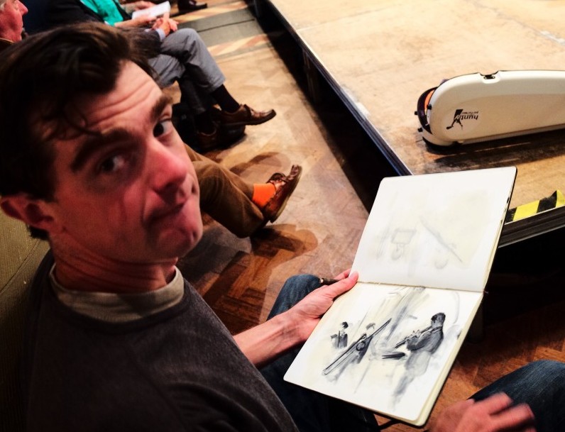 Charlie has been in and around the town sketching from the Church Tower, the Gun Gardens and at Camber, for example, and also at many of the events – he is pictured here sketching at the English Cornett and Sackbutt Ensemble concert in St Mary’s Church on Sunday September 20.
