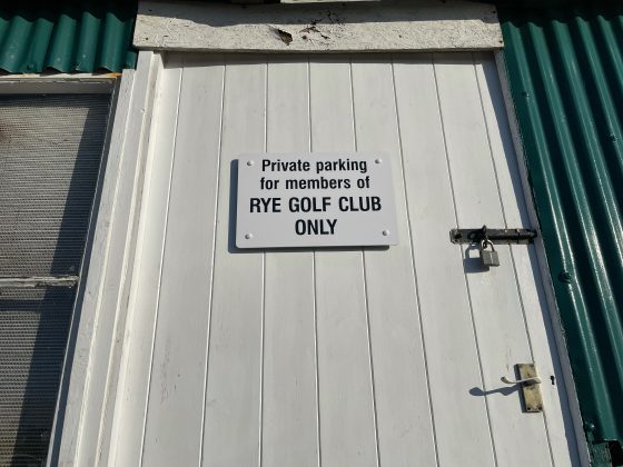 Rye Golf Club have put up signs saying “Private Parking for members of RYE GOLF CLUB ONLY”. In addition a number of signs have been erected as you enter the road, saying “STOP. PRIVATE ROAD. STRICTLY NO ACCESS. AUTHORISED FOR RYE GOLF CLUB AND HARBOURMASTER ONLY”. And if you didn’t get the message further signs says “STOP. NO ACCESS. STRICTLY PRIVATE ROAD”, while another says, “RYE GOLF CLUB. PRIVATE LAND. NO ACCESS TO THE SEA OR THE BEACH. SEA (CAMBER)” and contains a helpful arrow ⬅️ pointing you towards Camber.