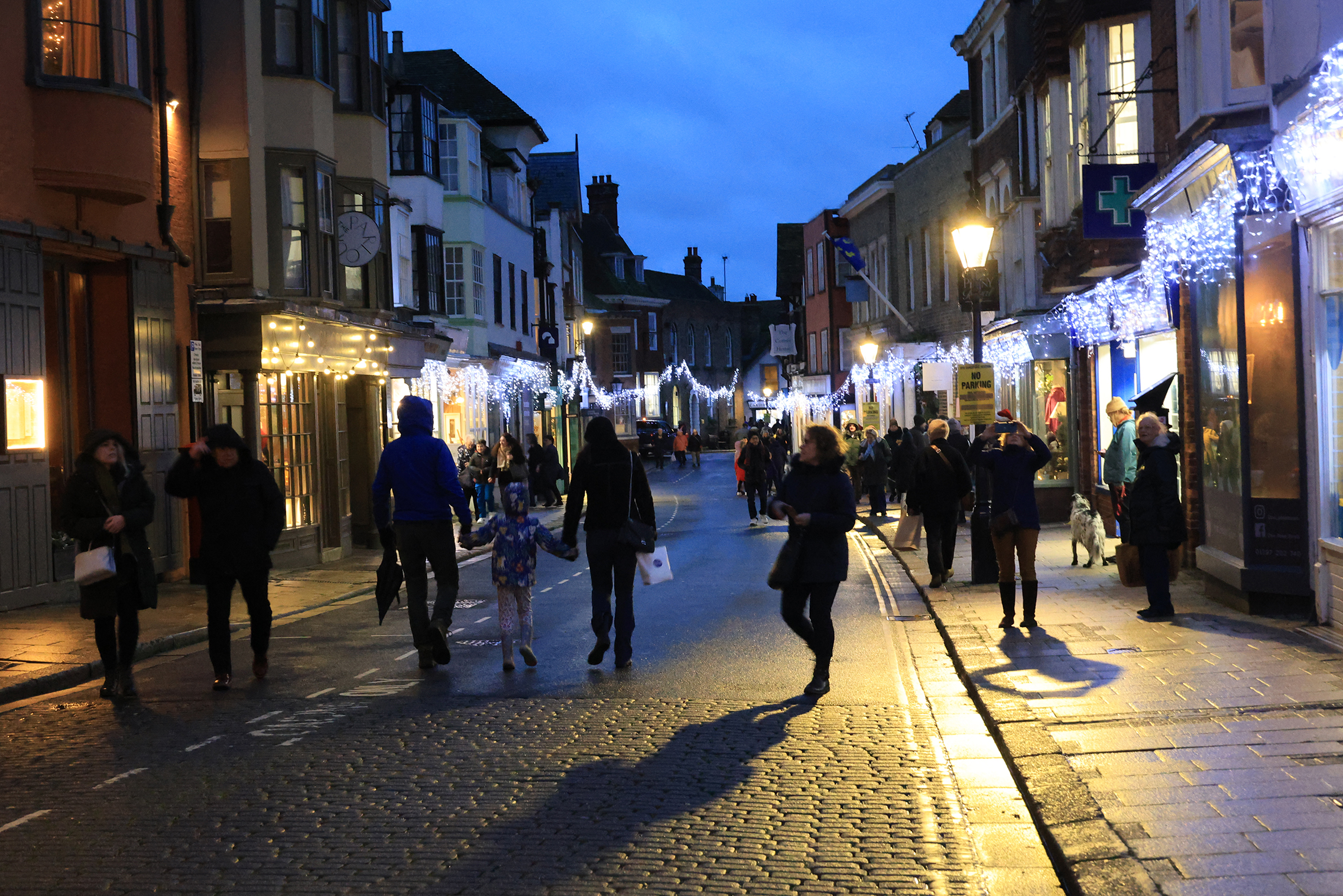 It is always very popular and fun to watch as it draws in big crowds. As the evening came, the lights on the High Street were very welcoming, and people carried on shopping and had a different kind of fun.