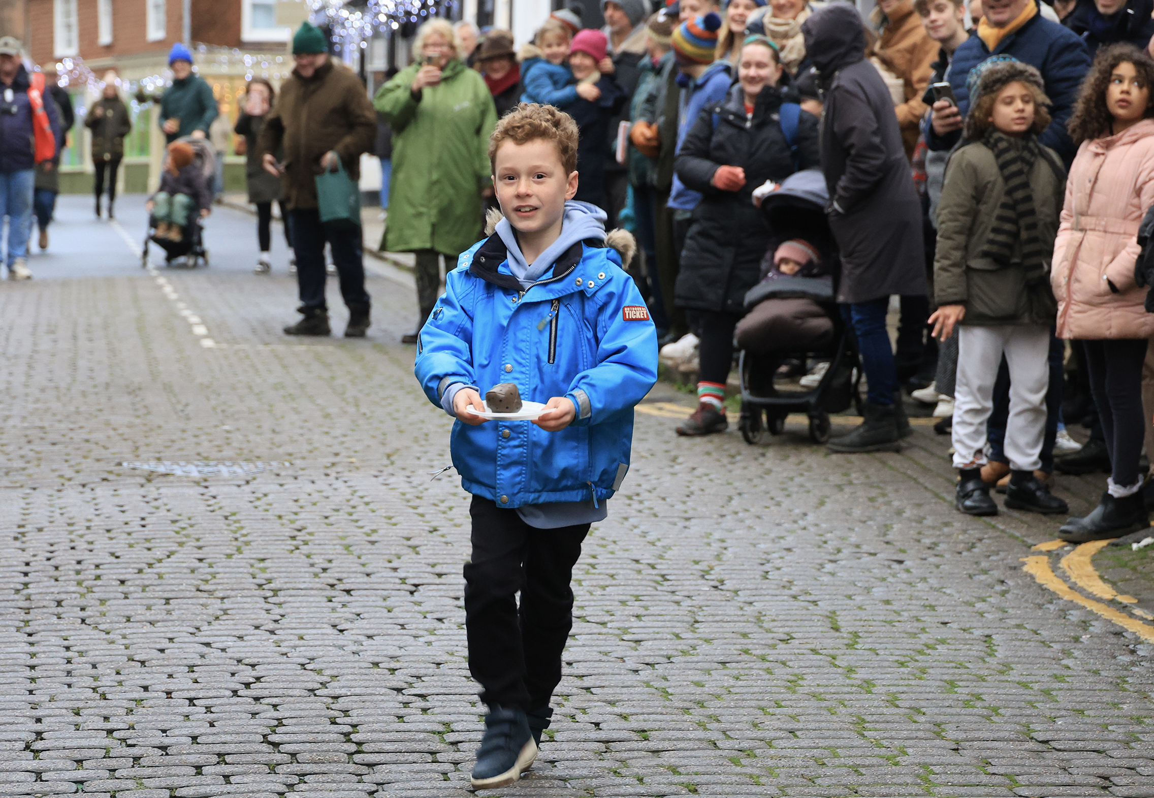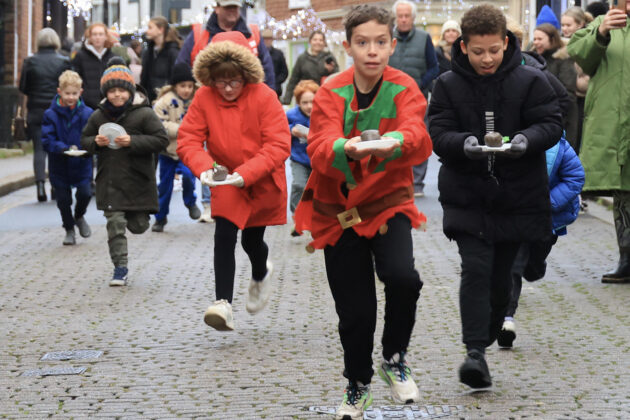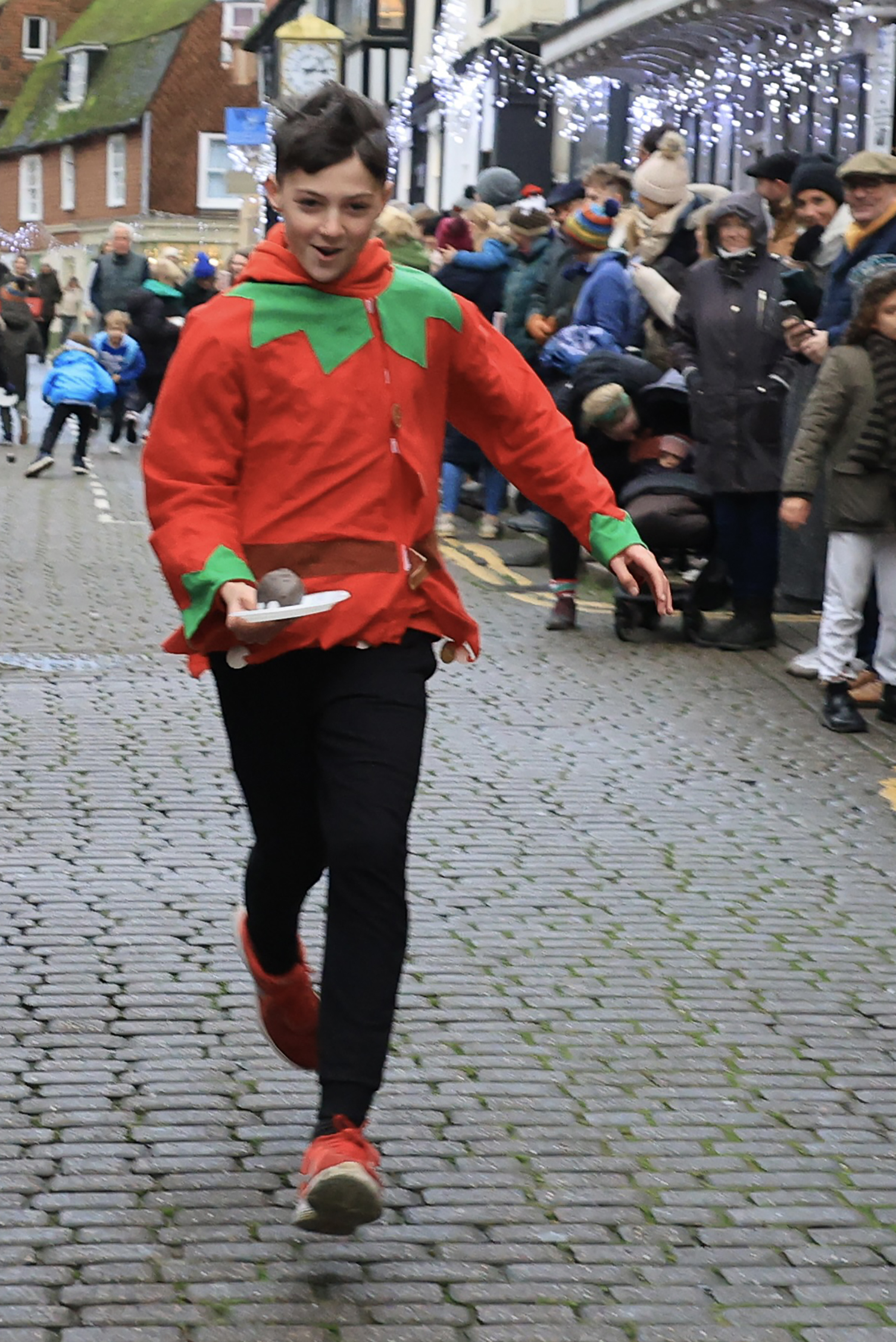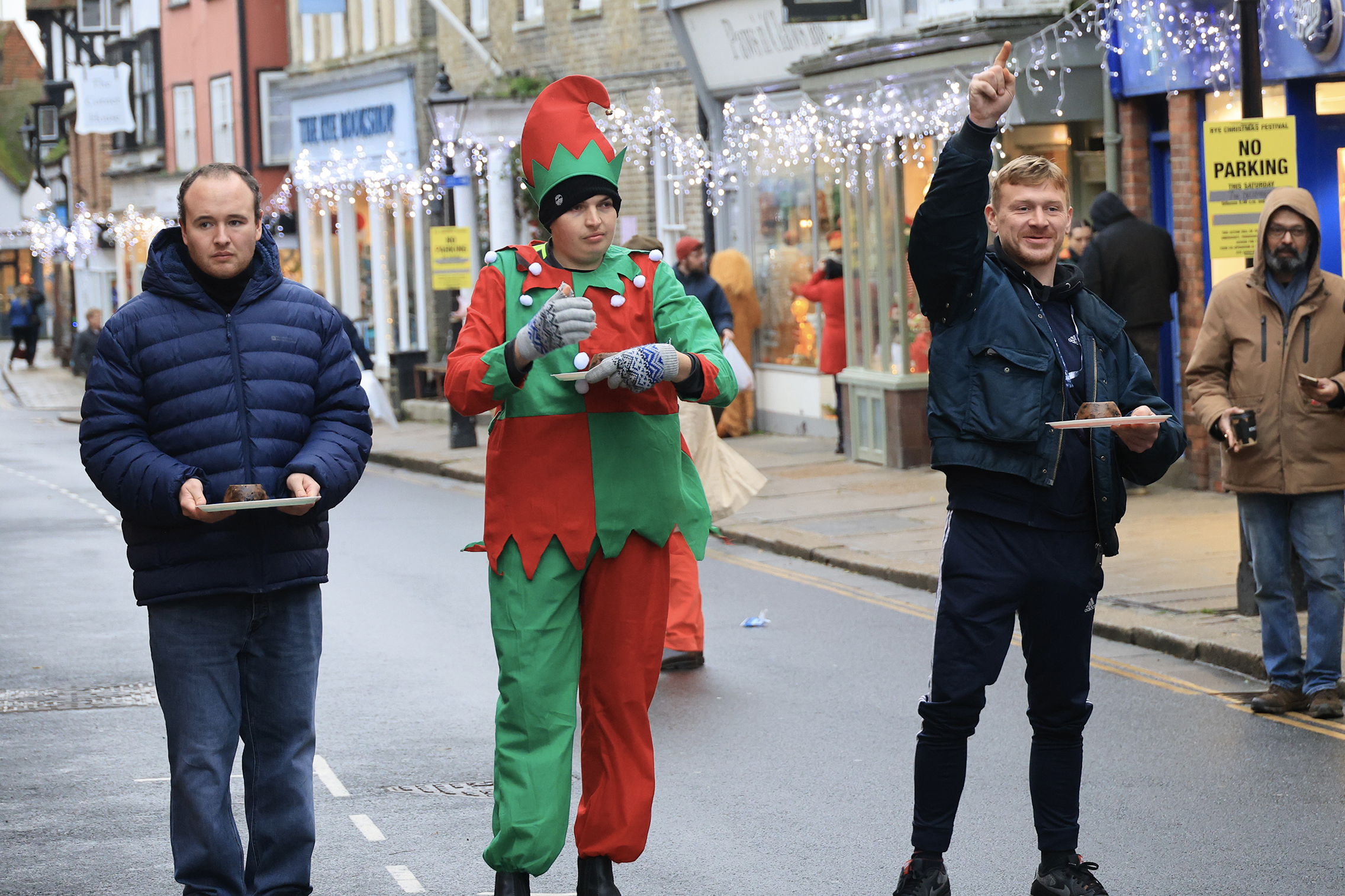 The rain stopped but the wind didn’t! It didn’t matter though as Rye children and adults were not going to be denied their pudding races and turned out in force on Saturday December 7. Christmas in Rye continues whatever the weather.