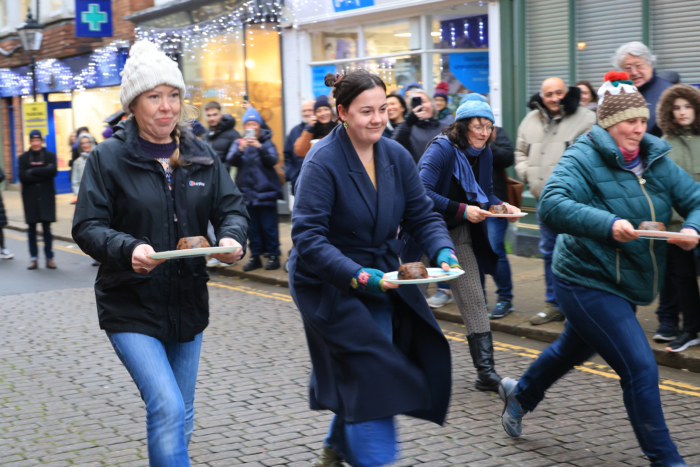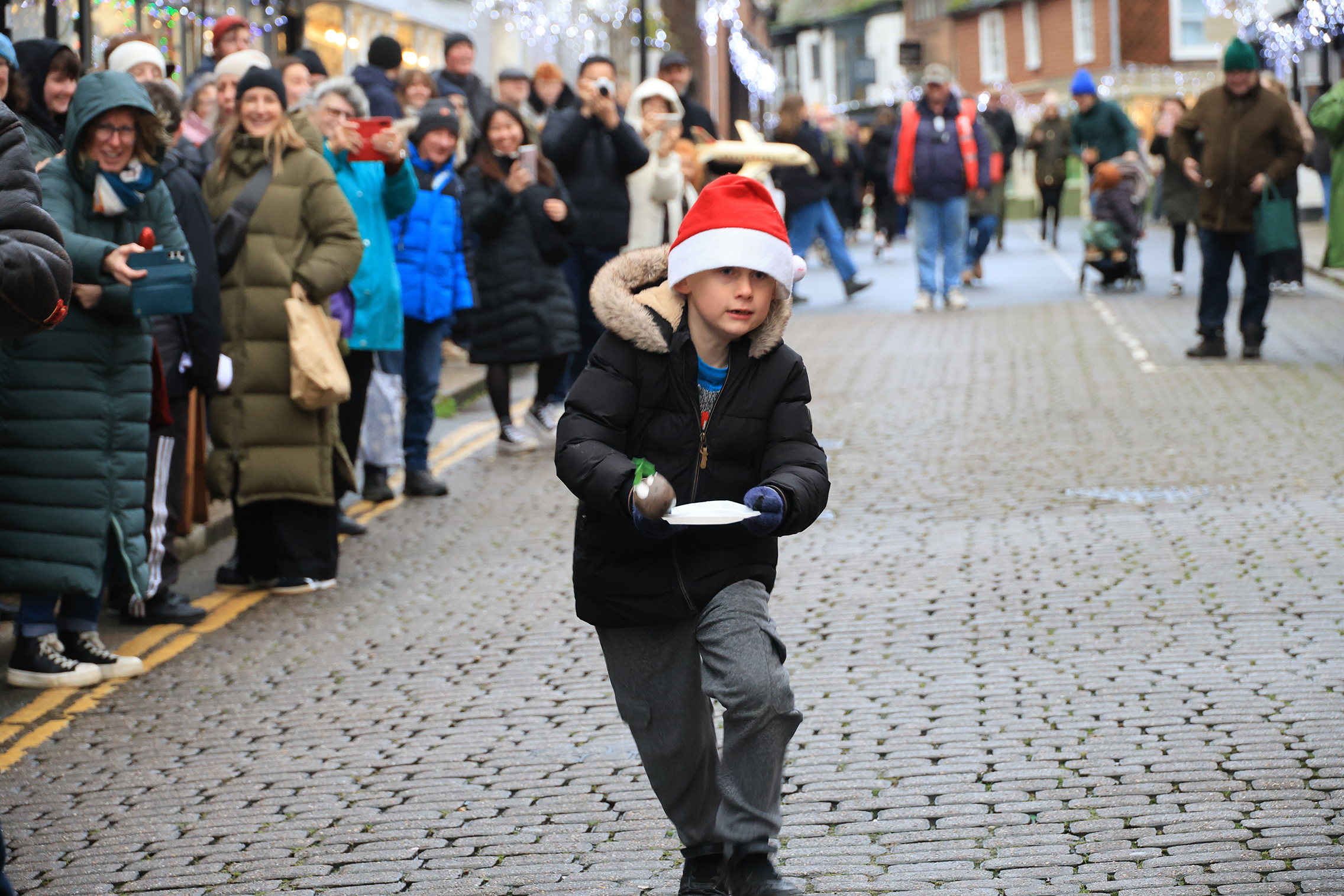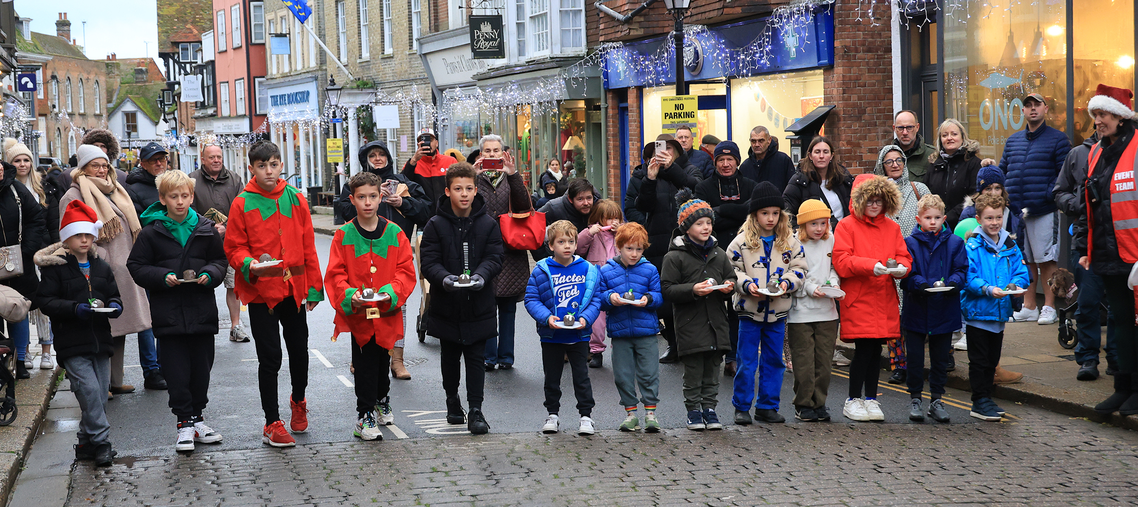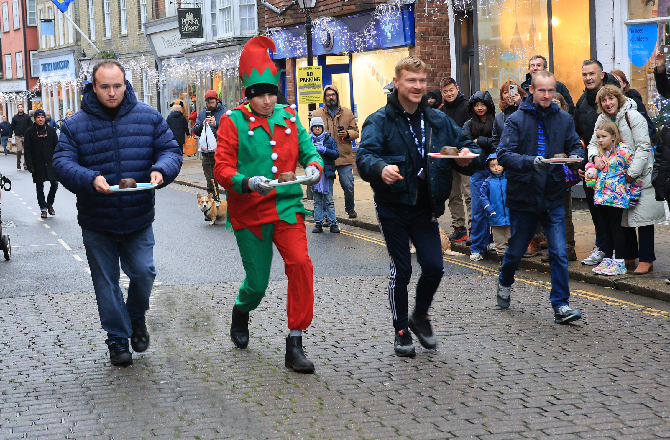 The rain stopped but the wind didn’t! It didn’t matter though as Rye children and adults were not going to be denied their pudding races and turned out in force on Saturday December 7. Christmas in Rye continues whatever the weather.