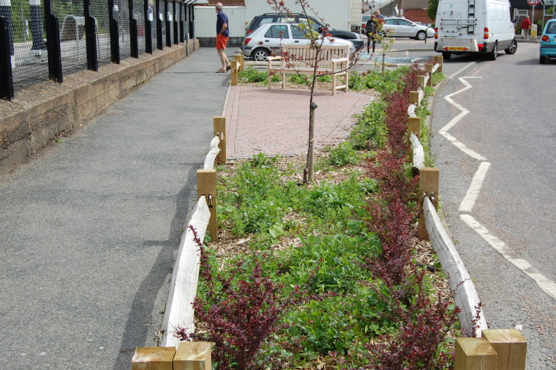The newly installed garden by the rail station, opened on April 24 and dedicated to John Ryan, former local resident and creator of the Captain Pugwash” childrens’ books, was looking decidedly unkempt after the weeds sprang up and vandals tore out one of the ornamental trees, writes Kenneth Bird. Now, thanks to the efforts of local volunteers, Keith and Kathy Buckland, the weeds that threatened to swamp everything have been quickly cleared. As gardeners know well, the use of unsterilized soil in setting out beds will inevitably result in germination and growth of dormant seeds, “but it’s now looking good again and very soon, the periwinkle will take over and provide excellent ground cover”, said Keith Buckland. “We found the ornamental cherry tree torn out by its roots and dragged some distance away. Although we replanted it, we feared it would not survive its ordeal and would need to be replaced. However, it’s hanging on in there, so I may have spoken too soon.” The Bucklands are members of the Community Rail Partnership team that took responsibility for bringing into public use this previously unsightly area of ground.
