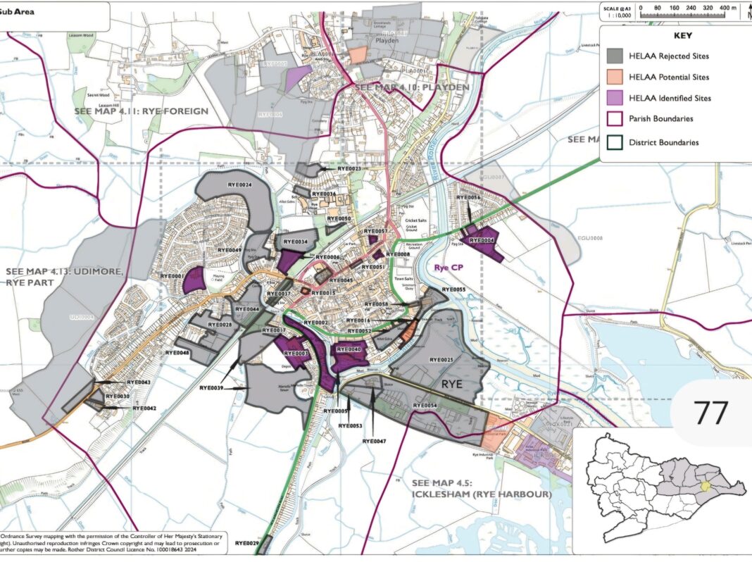 To this end in 2023, Rye Planners completed a strategic review of all the sites around Rye considered by owners and developers to have potential for development. This resulted in a comprehensive “Site Reassessment” which has been shared with Rother Planners. As a result, all the sites proposed by developers have been reassessed and categorised as “identified, potential or rejected” in the Rother Housing and Economic Land Availability Assessment (HELAA).