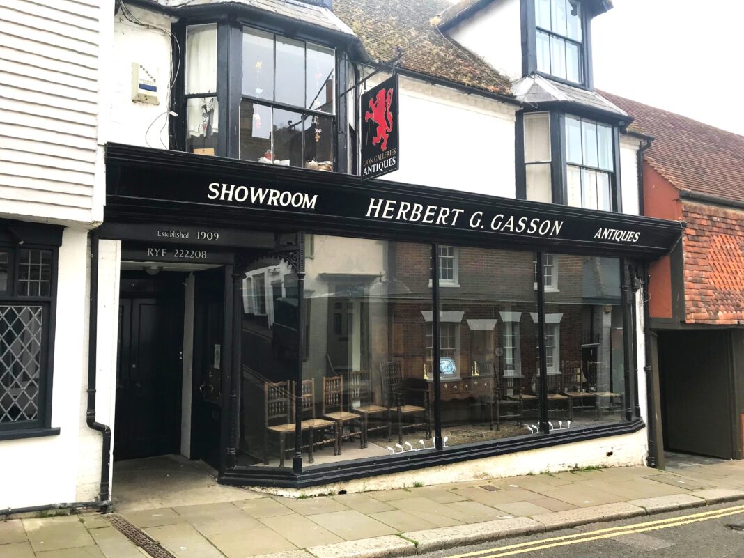 Herbert G Gasson is a name which has been around in Rye for a very, very long time and for the time being at least it can still be seen on the fascia of his shop in 9 Lion Street, Rye, a former high-end antiques business which has been in the family for many years.