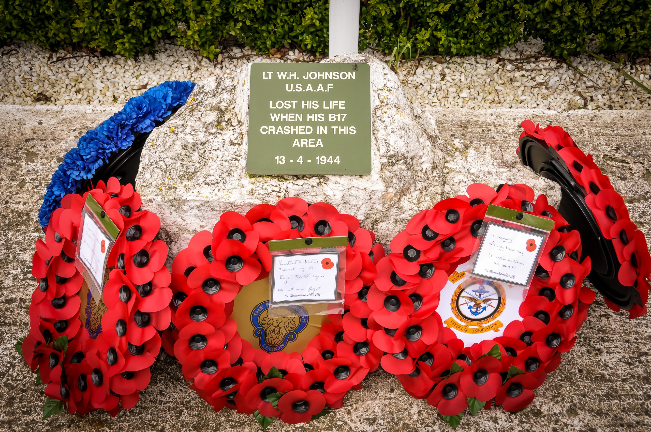 Over France, the aircraft was hit by flak, wounding several of the ten-man crew, including the pilot, who made the decision to return home. After crossing the channel Lt. Johnson gave orders for his crew to abandon the stricken bomber as they passed over Hythe. As the aircraft crossed Romney Marsh heading towards Hamstreet, Lt. Johnson realised the B-17 would come down on the village. In order to avoid the inevitable loss of civilian life, he sacrificed his own life by nose-diving the bomber onto farmland south of the village.