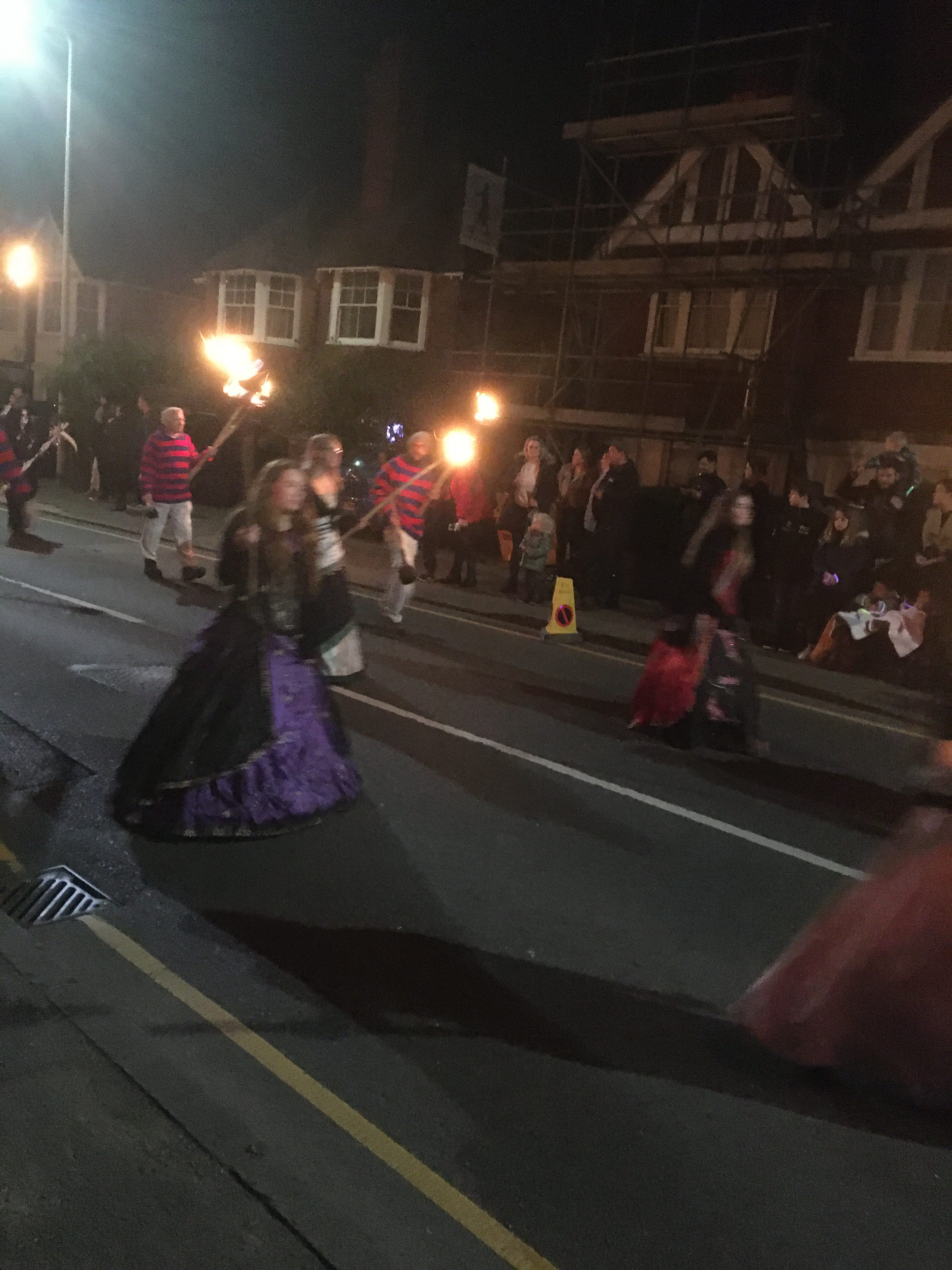 It was amazing the way a rather dull suburban road was transformed into something quite magical, the drums the heartbeat of the march and the drummers completely unrecognisable under their rather fabulous hats. As always, there were wonderful costumes like the Victorian dresses below, and most importantly the flaming torches. What a sight, what a wonderful change, how everyone enjoyed it, if only for a few hours!