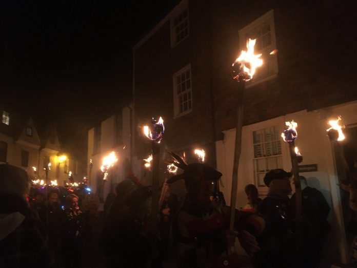 The Rye Bonfire pageant was held on Saturday, November 13 and opened with the most magnificent display of pageantry, starting from Mason Road, Tilling Green and going along Ferry Road to the Crown Inn, in the images below. The route was then followed to the junctions of Mermaid street and the Borough Arms, the main picture.