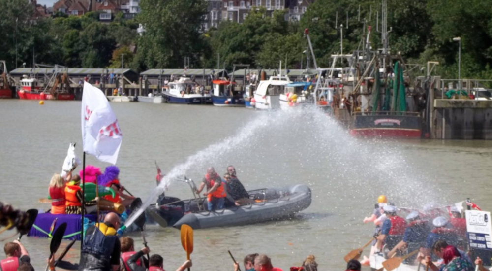 It starts at 11:15am with the raft race around the fishing quay by the Monkbretton bridge across the River Rother on the Kent side of Rye where the teams will be battling each other in their home made rafts, as well as avoiding the flour and water bombs from the spectators lining the river bank.