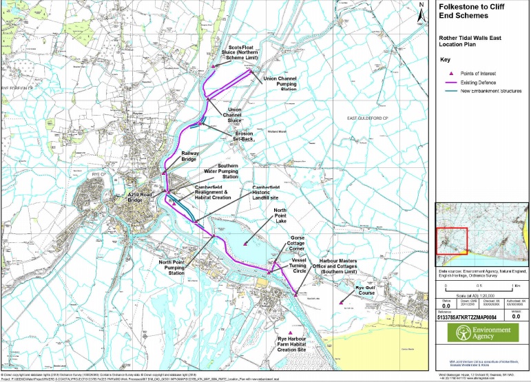 The Agency’s plans, officially called the Folkstone to Cliff End Schemes, aims to reduce flood risk to properties across the Romney Marsh area. This involves work to three flood defences that lie between Rye, to the west, and Hythe, to the east. The three proposed flood defence works are on the east bank of the River Rother; at Lydd Ranges, and at Hythe Ranges.