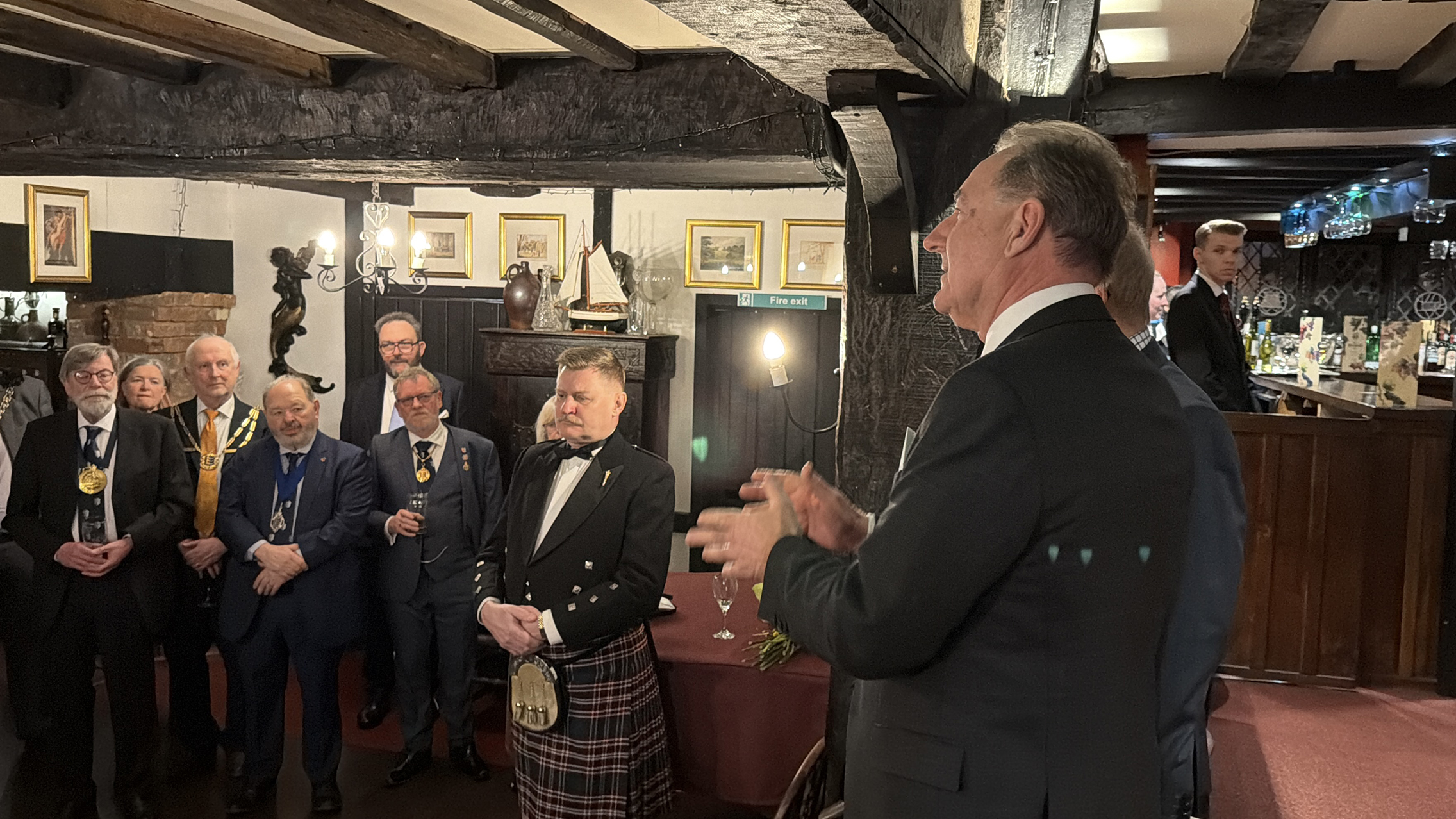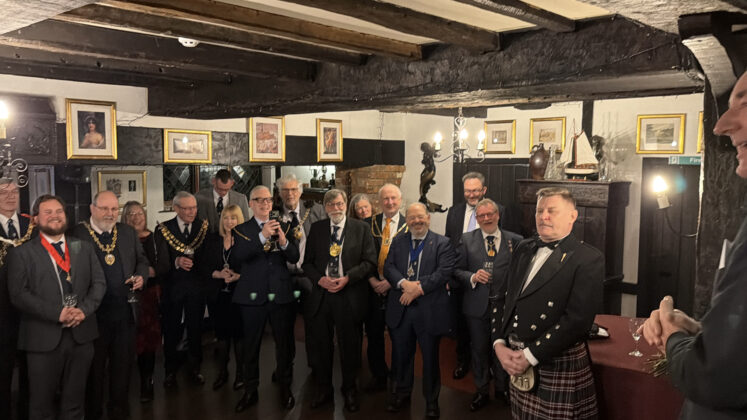 After 34 years of quiet, steadfast service, Ian Russell, Registrar and Seneschal of the Cinque Ports Confederation, lays down the pen that has traced so much of the Confederation’s modern story. To mark his retirement, representatives from 13 Cinque Ports towns along with the Lord Warden of the Cinque Ports, Admiral Sir George Zambellas, attended a special dinner at the Mermaid Inn in Rye on Friday 13 February.