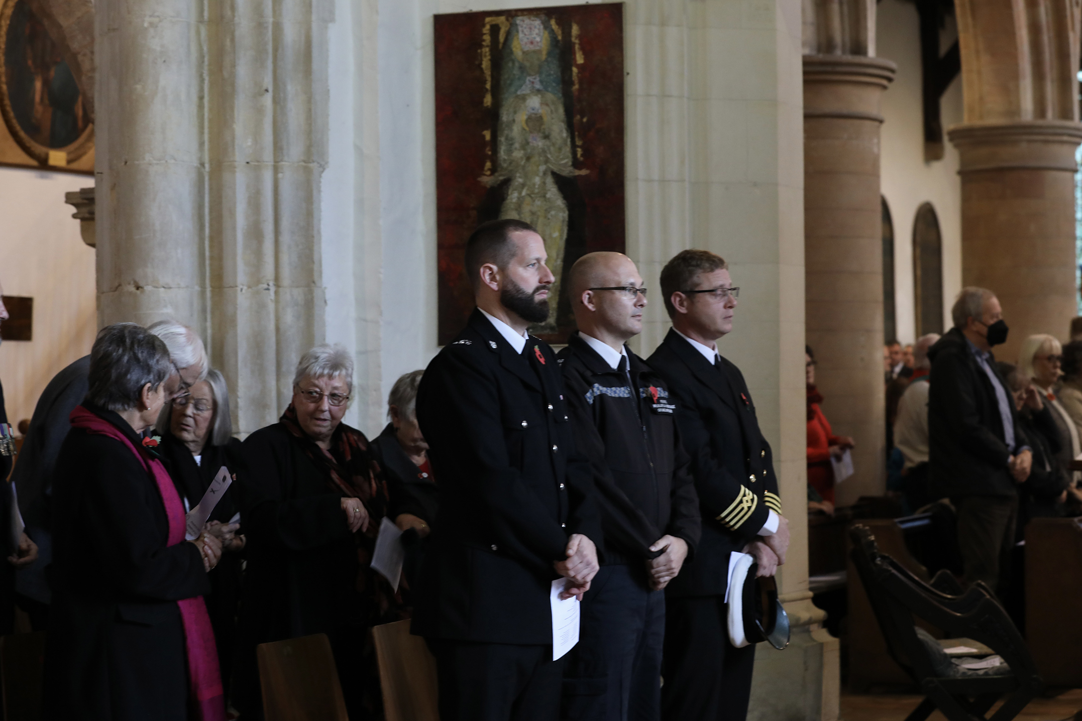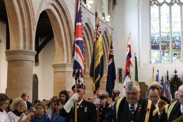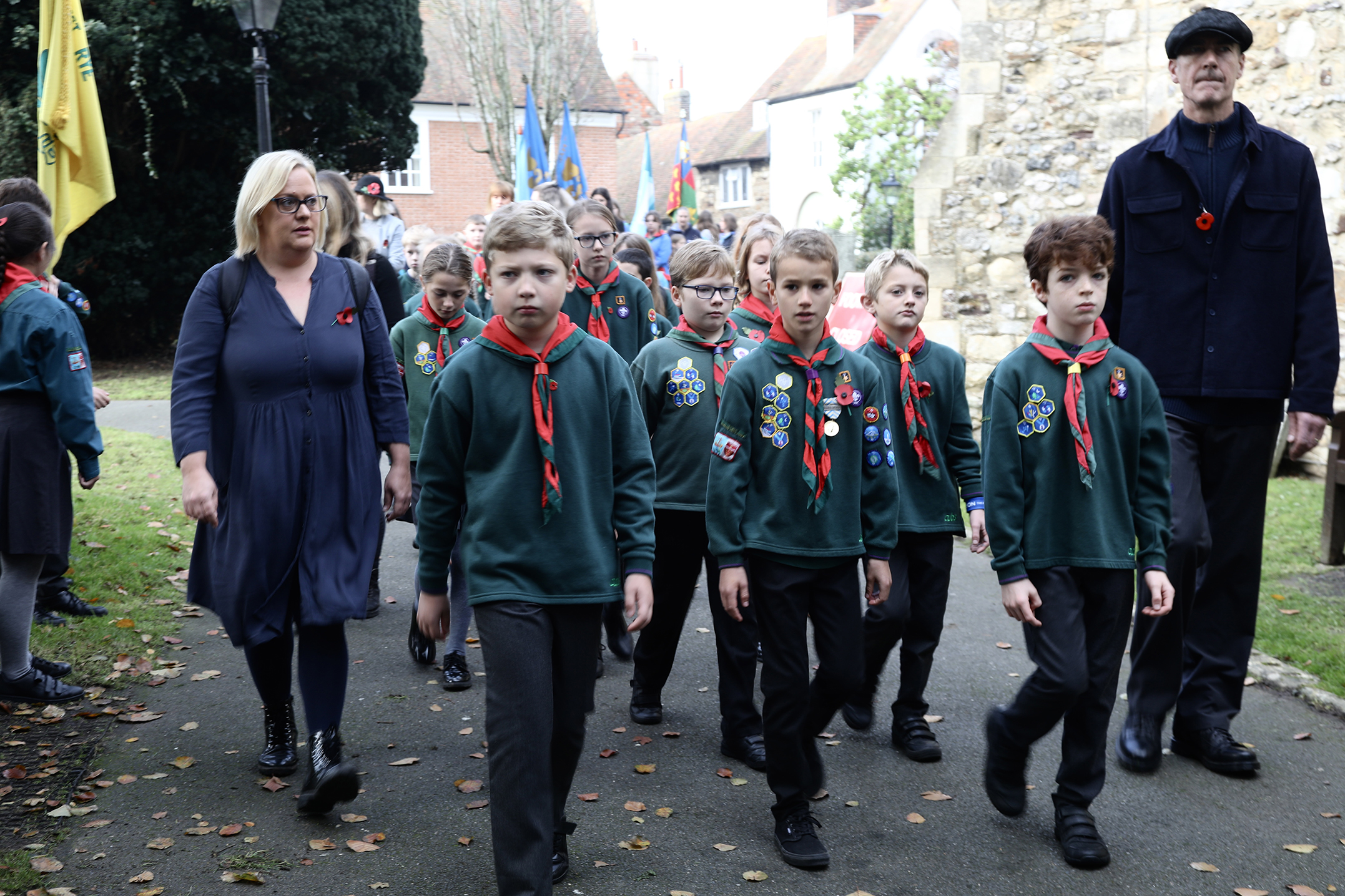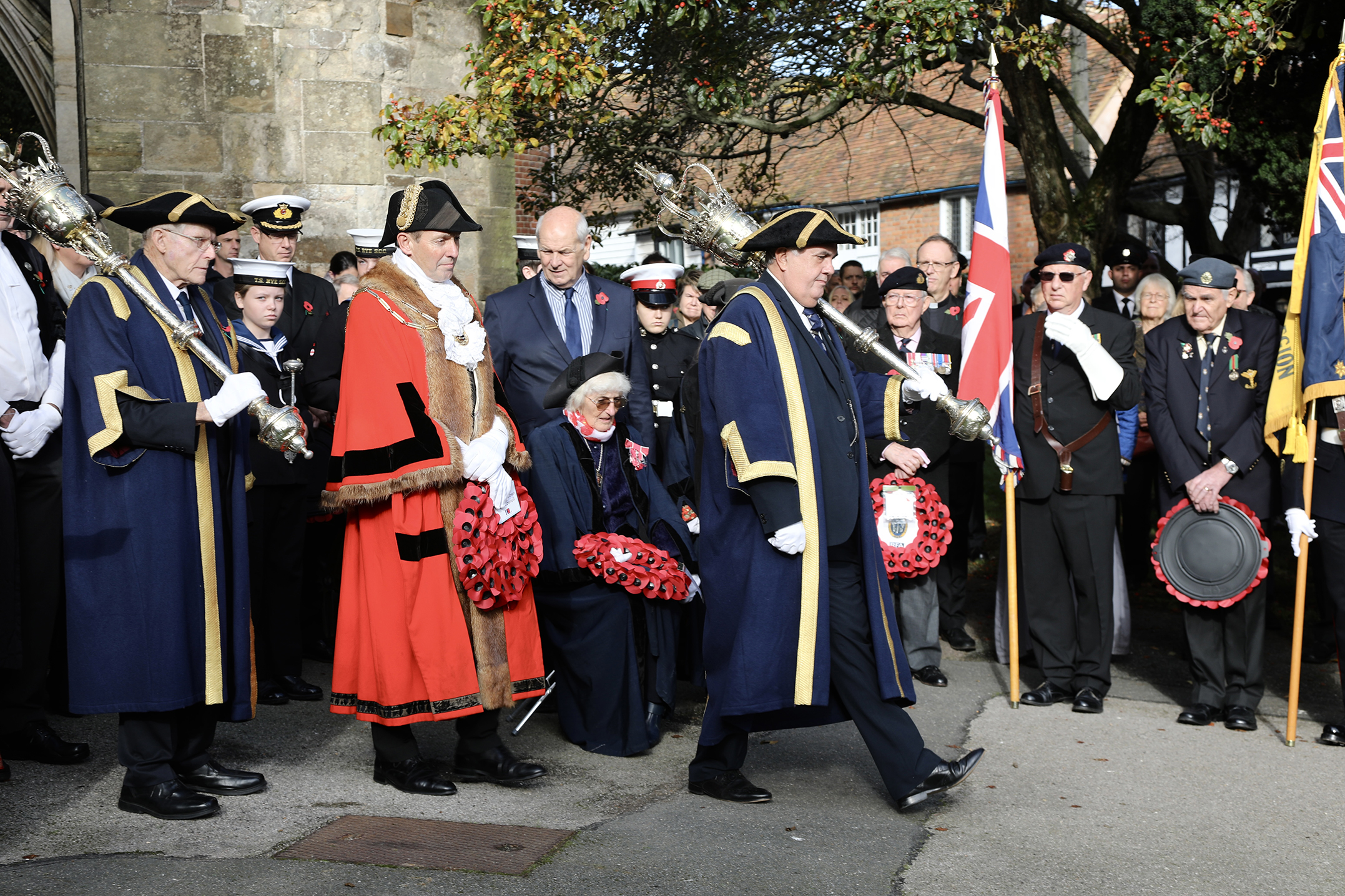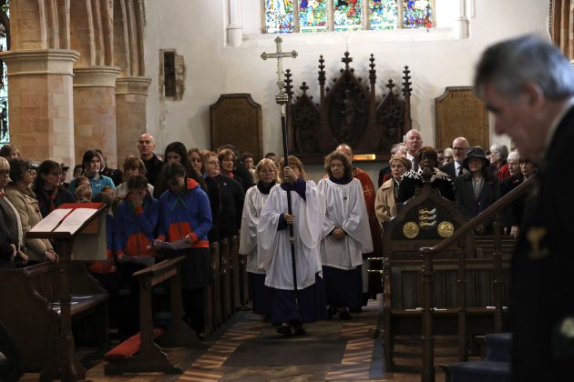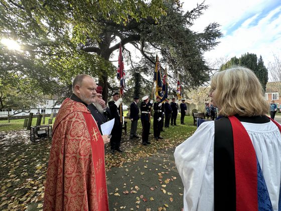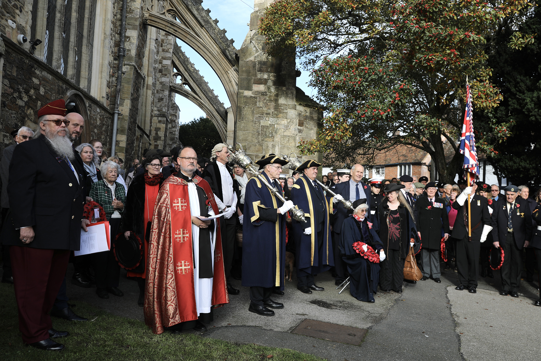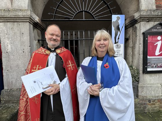 St Mary’s, Rye was packed on Sunday with worshippers wishing to remember and pay their respects. The service was conducted by the rector, Revd Paul White and Linda Estrada. There was a parade beforehand of services, civil and youth organisations proudly carrying their standards.