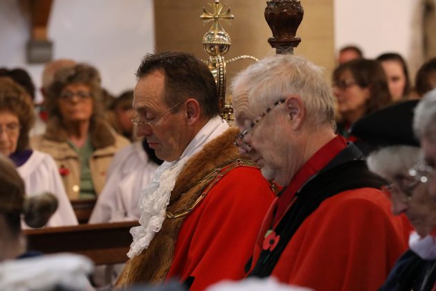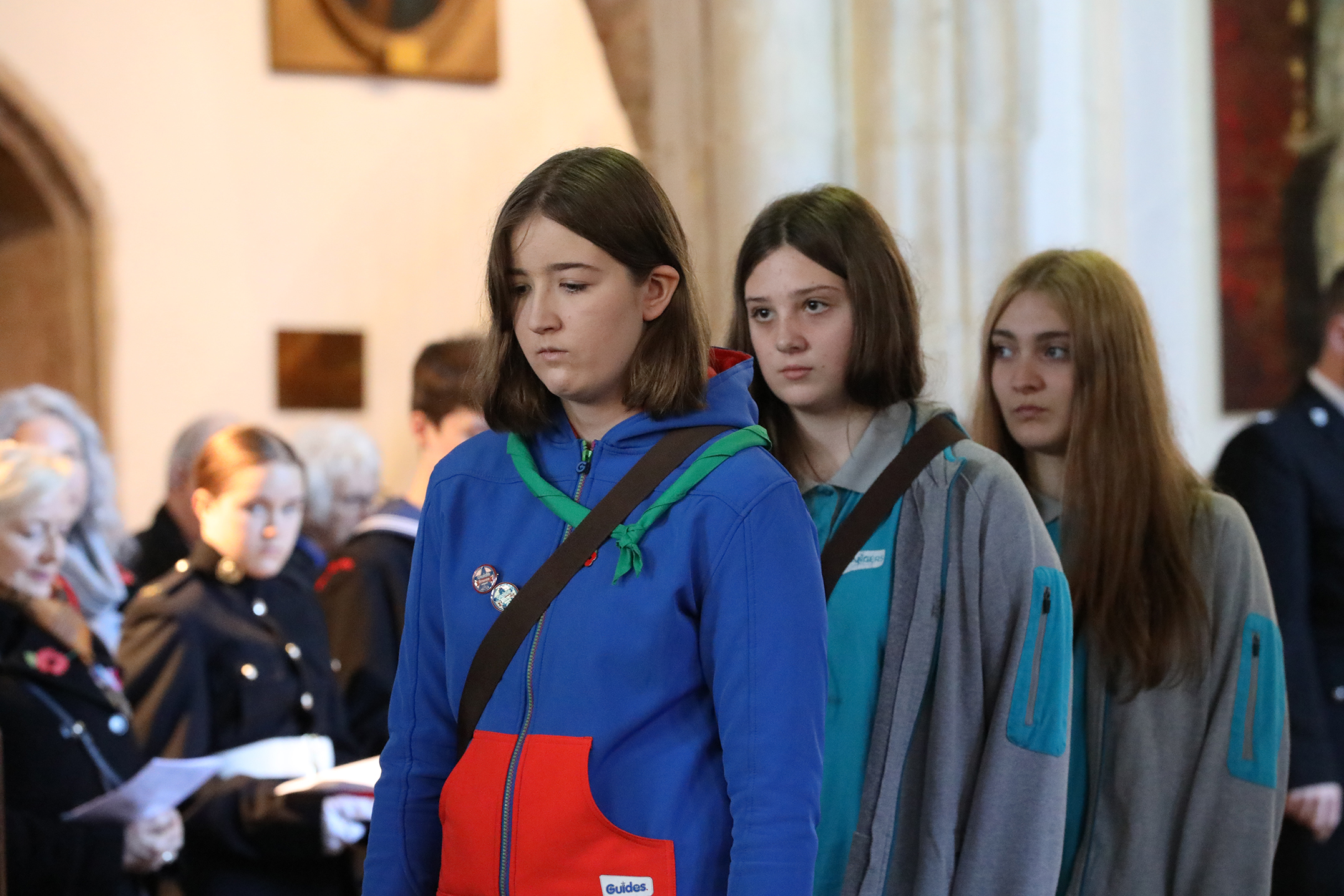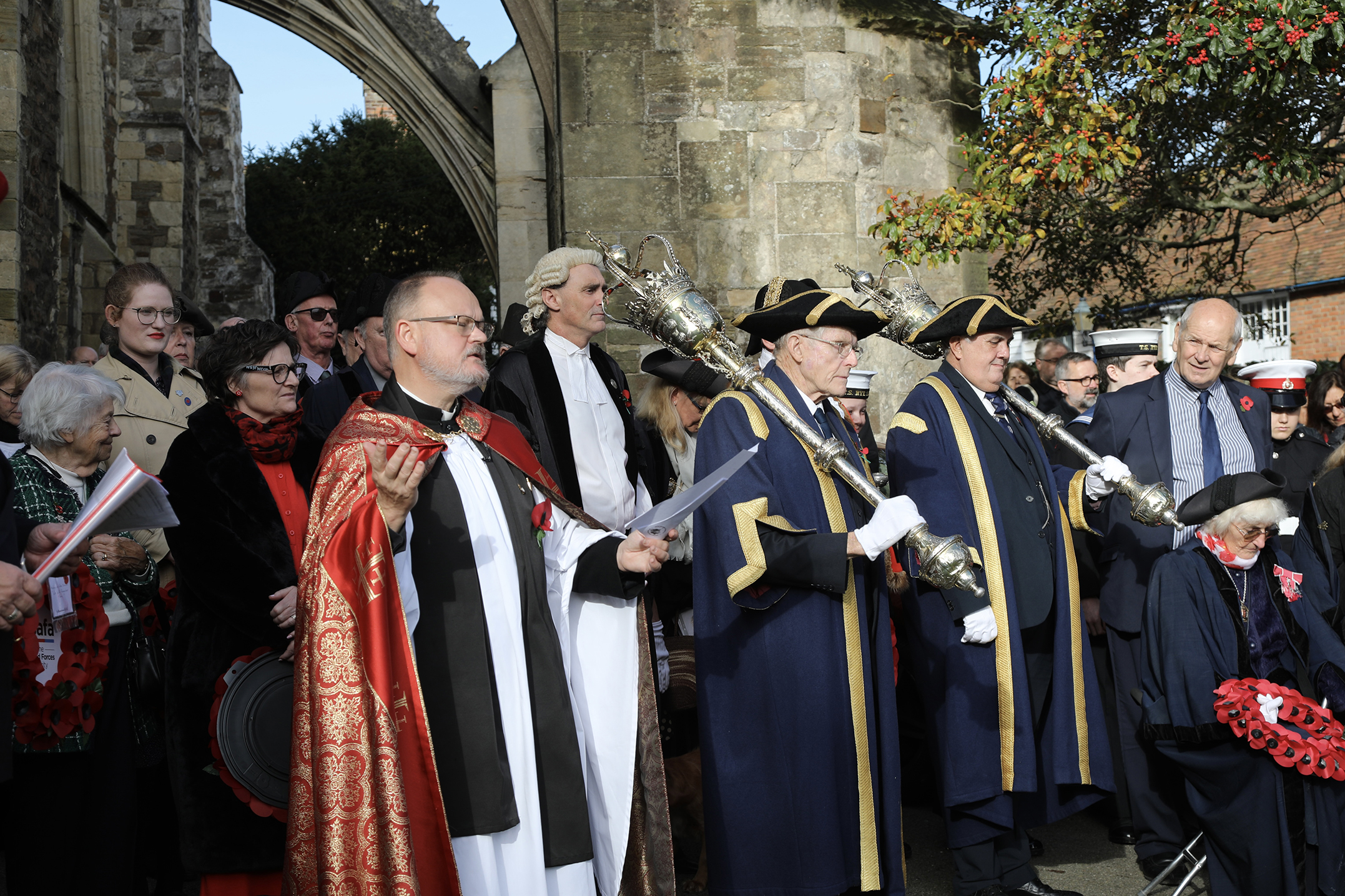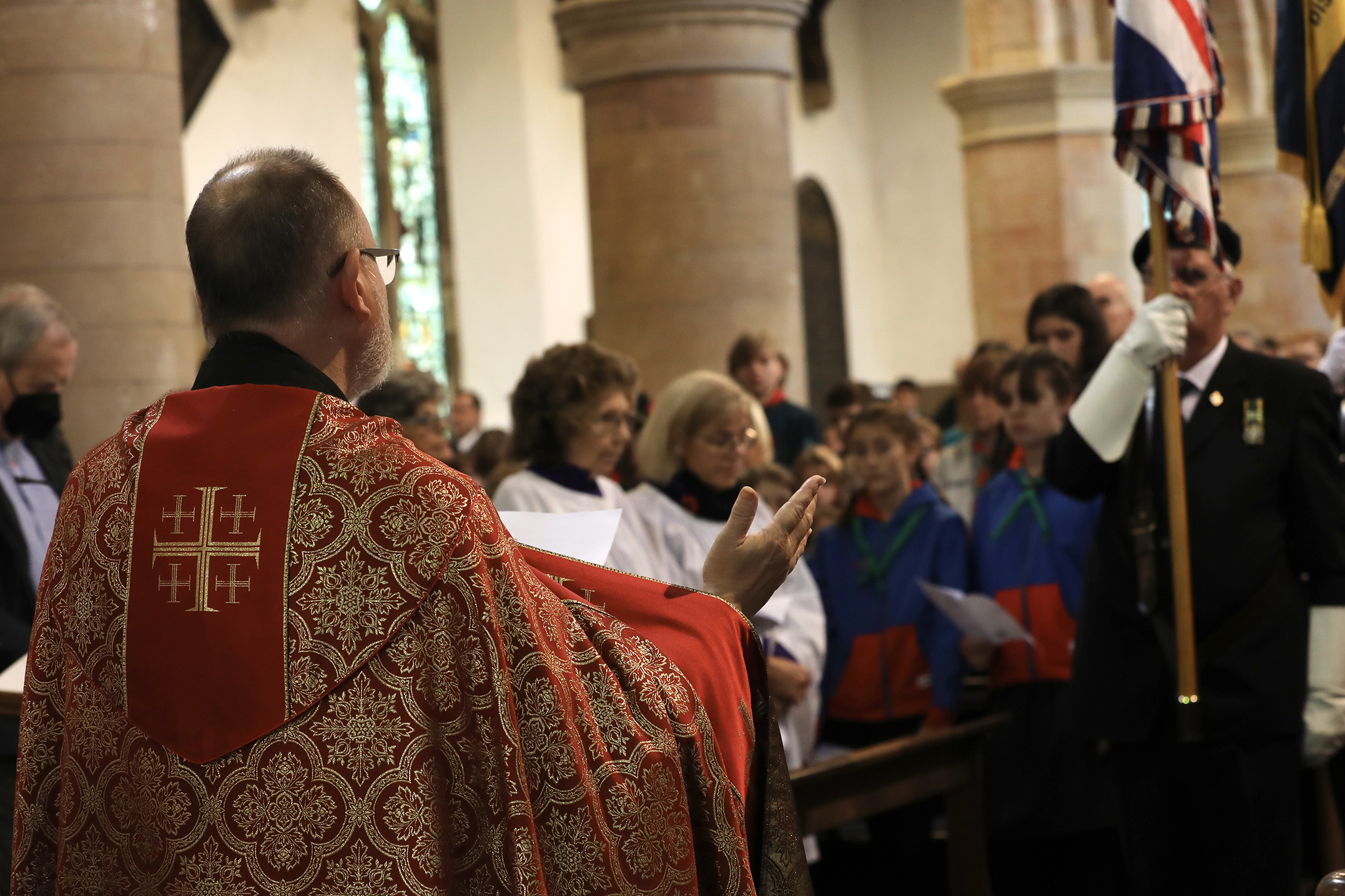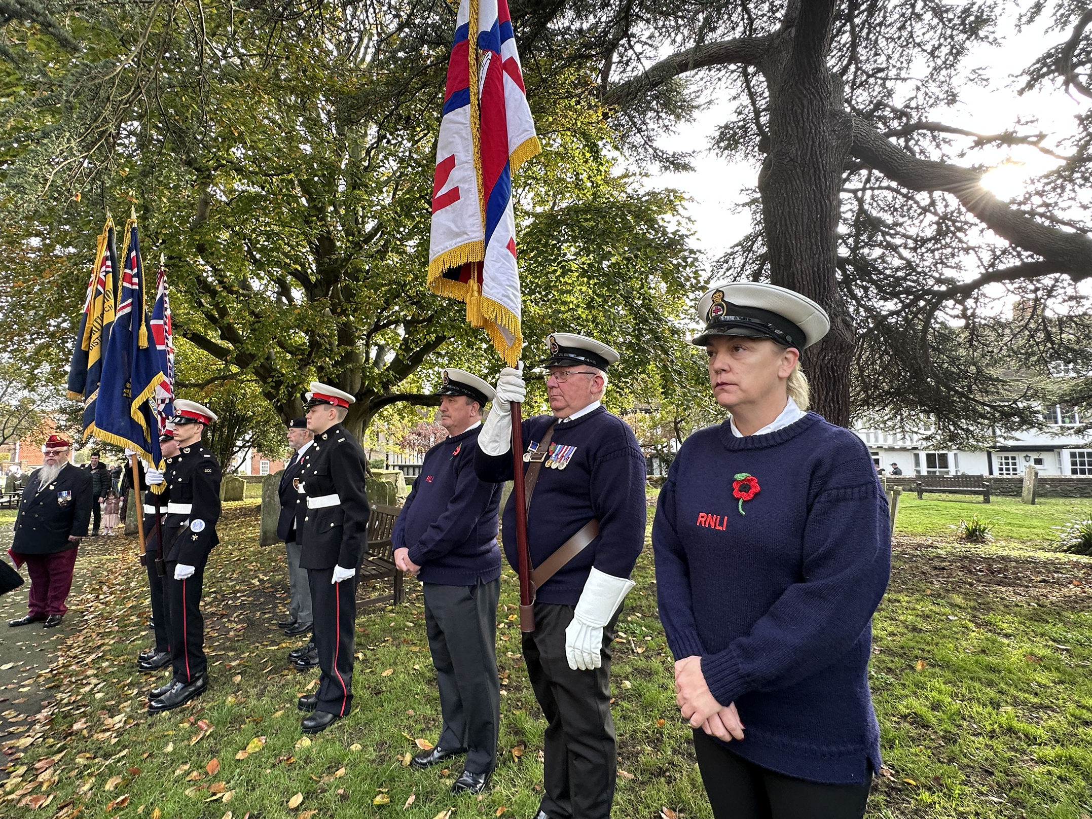 St Mary’s, Rye was packed on Sunday with worshippers wishing to remember and pay their respects. The service was conducted by the rector, Revd Paul White and Linda Estrada. There was a parade beforehand of services, civil and youth organisations proudly carrying their standards.