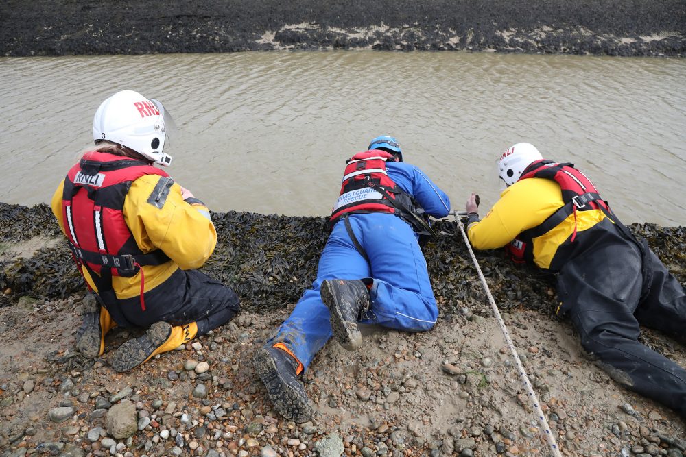 Senior crew member on the shout, Tony Peters, said, ‘Now that we are seeing the first warm weather of the year we are experiencing increased calls to rescue dogs. We would always advise any dog walker in this area to keep dogs on leads and under no circumstance attempt to rescue the dogs themselves.”