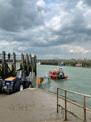 On Wednesday, May 17 at 11:59am RNLI were paged by HM Coastguard and the Atlantic 85 was launched at 12:05pm. They were tasked to assist a fishing boat in the river Rother. It had lost its rudder and propulsion. Luke Bishop, helm, said: “There were three people on board and arriving at the scene we ensured that there were no injuries. We established a tow alongside and returned the boat and its crew to their mooring on the river Brede.”
