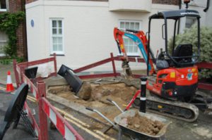 Work started on the morning of Tuesday, October 12 digging up the pavement at the entrance to Seaview Terrace. UK Power Networks have commissioned LPC cable installation engineers to replace the electricity link box that was installed sometime in the middle of the last century and is now obsolete.