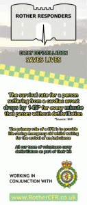 Rother Responders is a registered charity and does not receive any NHS funding. For further details, visit their website, or email info@RotherCFR.co.uk