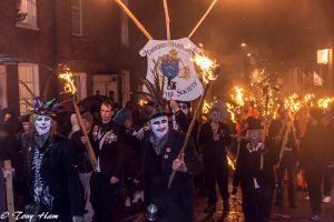 The drums and flaming torches always make this a dramatic sight with painted faces – sometimes a little macabre – and many societies opting for 18th century dress, adding to the effect.