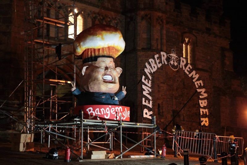 The effigy this year was Kim Jong Un with a nuclear cloud exploding from his head. The likeness was incredible. As the procession reached Abbey Green a mass of Chinese crackers were set off and the noise and smoke and spectacle of bonfire was beautifully amplified against spectacular setting of Battle Abbey. The traditional bonfire made of faggots piled against a pole add a poignancy to the event as it emulates the type of bonfire used for ritual burnings at the time of the Gunpowder Plot. The excellent firework display was fired from the fields behind the Pilgrims Rest. Depending on where you were standing it might not have been easy to appreciate all the wonderful display but this would have been more than compensated for by the view of the fantastic array of explosives around the entrance to Battle abbey. It was an excellent evening with everyone going home very happy.