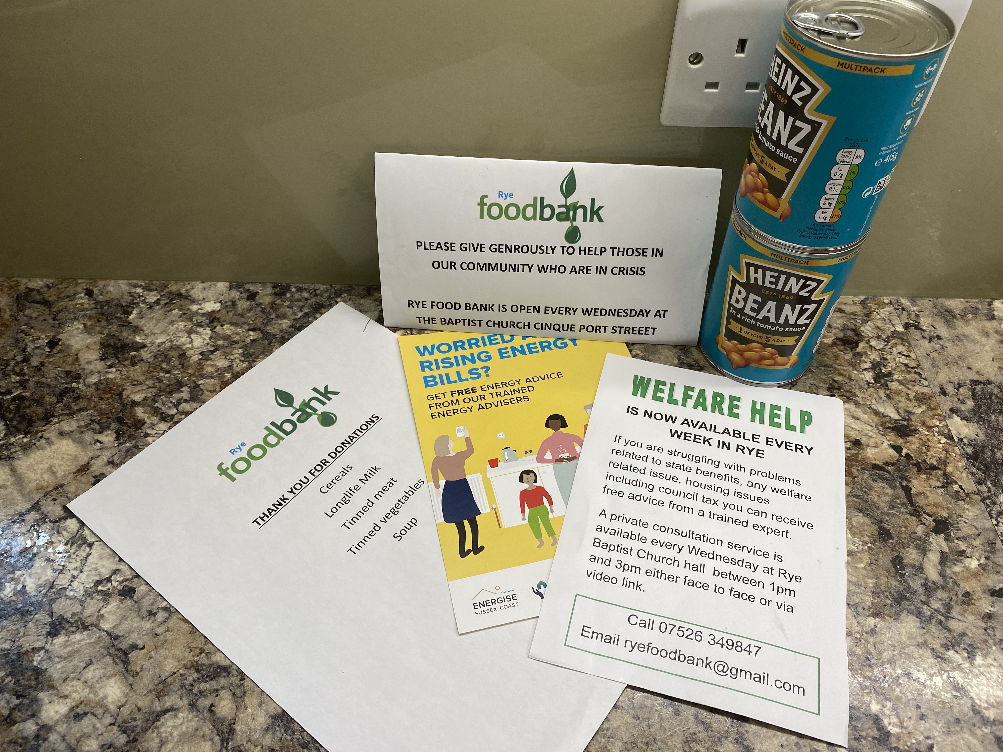 You can email ryefoodbank@gmail.com. Phone us on 07526 349847.