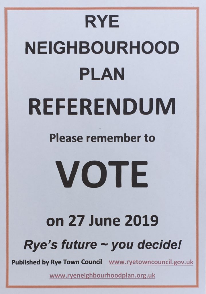 Voting papers are on their way to Rye constituents ready for the Referendum on the adoption of the Rye Neighbourhood Plan to be held on Thursday June 27, 2019 to decide on the question below: