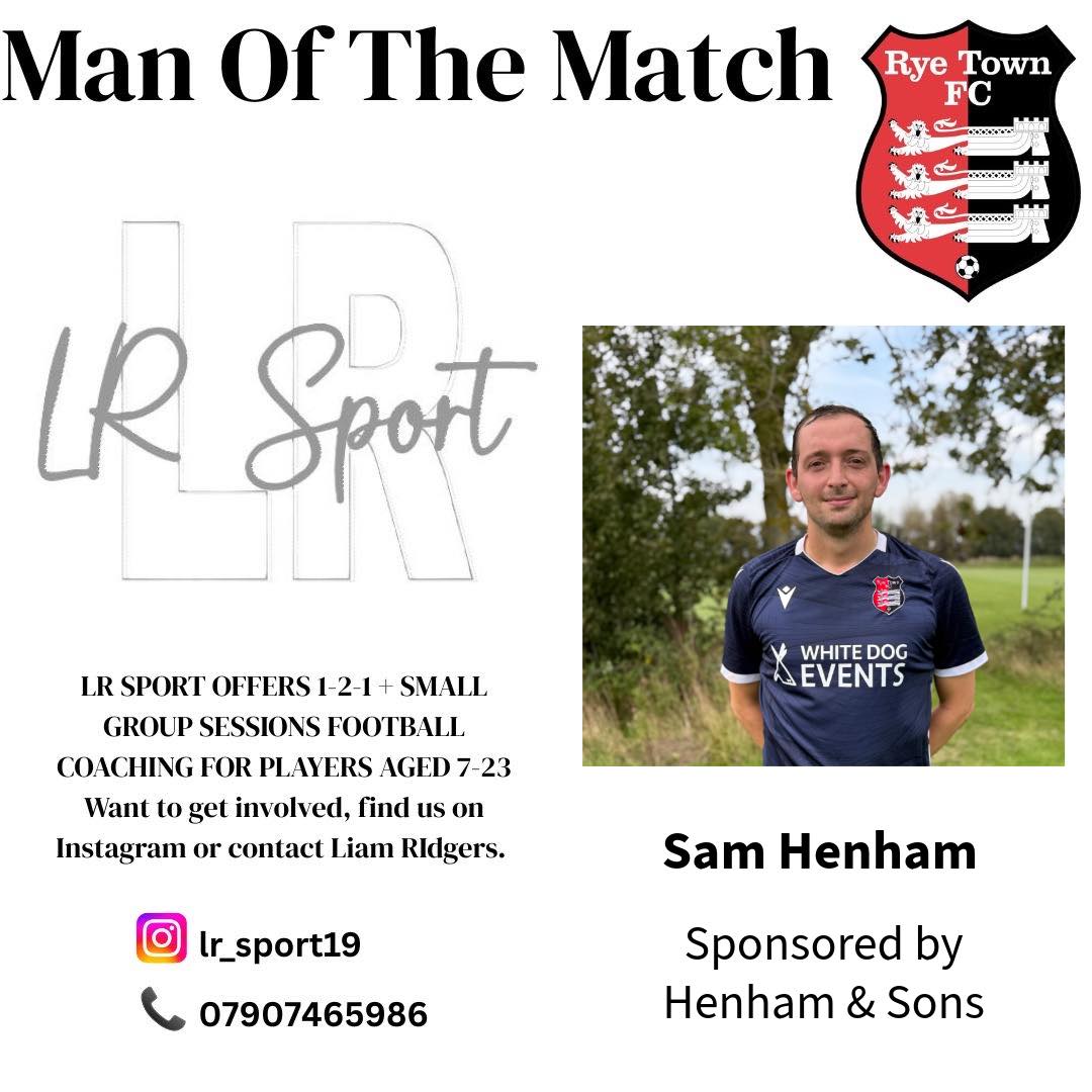 The final score was Rye Town FC 1 Westfield 2 and Man of the Match was Sam Henham.