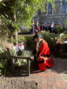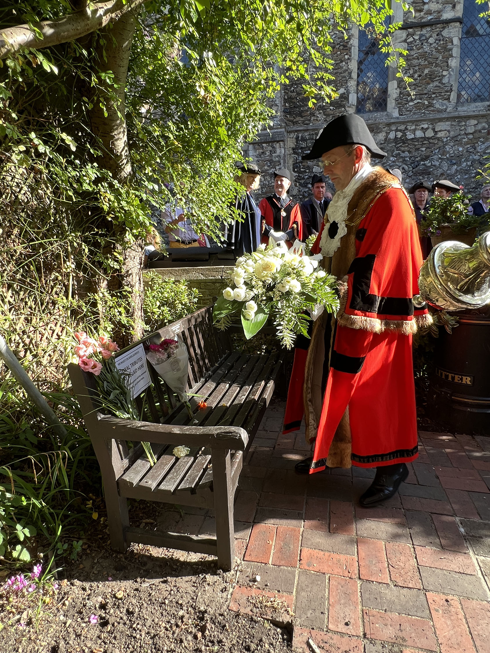 The mayor and his entourage walked round to the town hall gardens where he laid a floral tribute. It was very poignant, as was the fact that the ceremonial maces were shrouded in black.