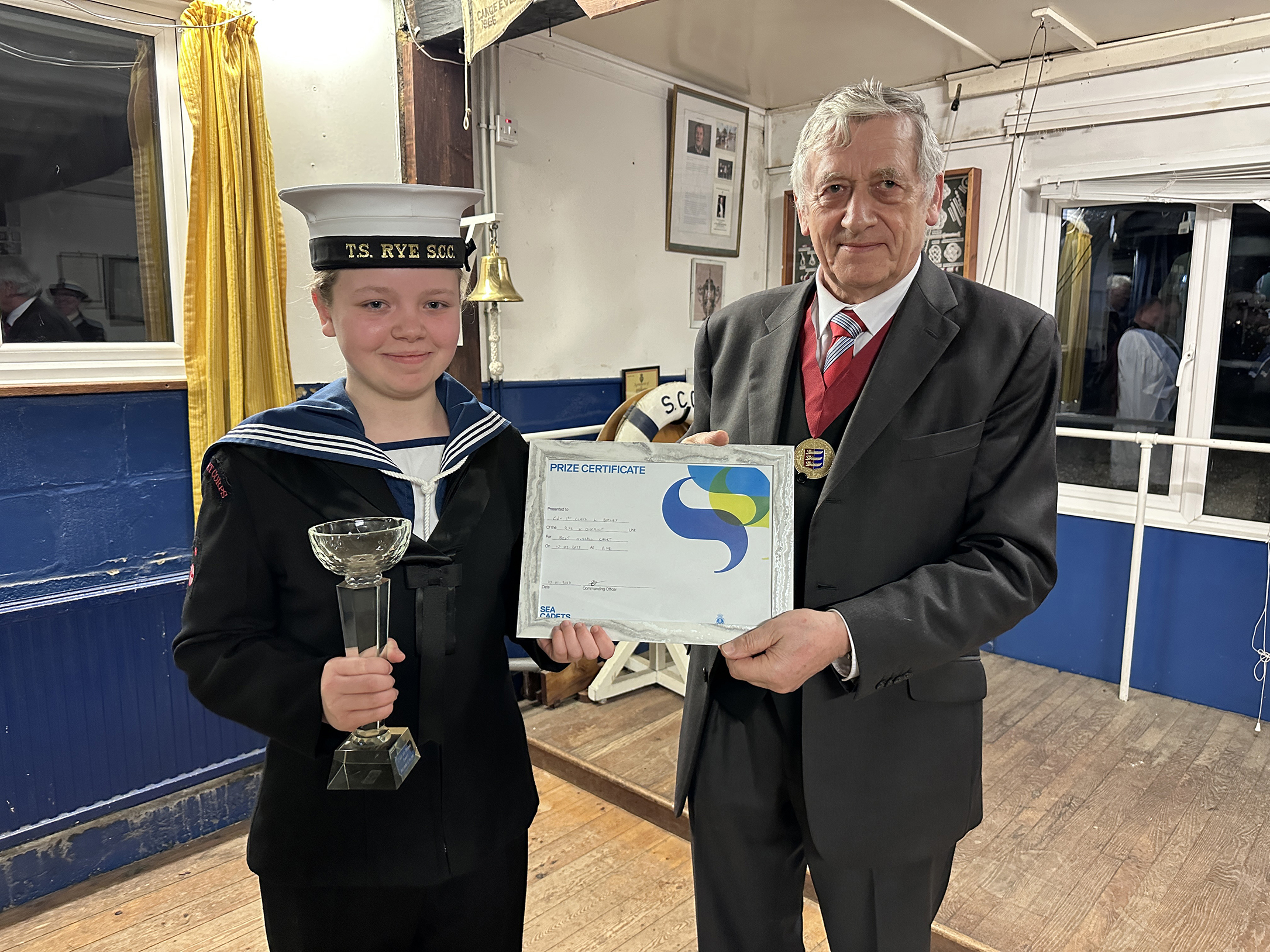 On Friday, February 10, Rye and District Sea Cadets celebrated the achievements of cadets over the past year. They were pleased to welcome Councillor John Breeds, on behalf of the Rye Town Council and the mayor, to present the awards.