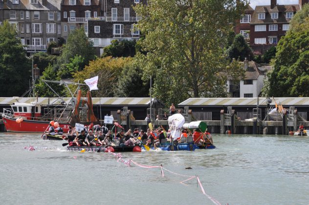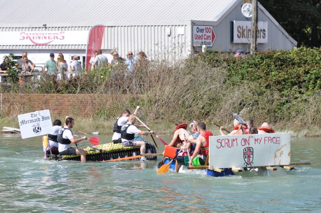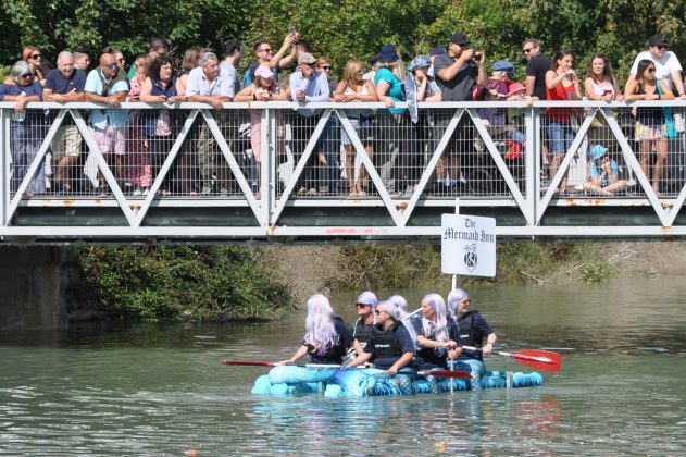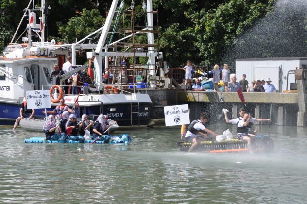 The raft race saw nine crafts entered and the winners for a third year running were Skinners, winning the Reg Emson Trophy and sponsorship money from Rock Channel Marine. On a new raft and despite numerous attempts to unseat them all, they still battled through to first place. The Mermaid Inn gents’ team came second and the ladies third, who also won the best-dressed raft as a team of mermaids, which was sponsored by Utopia / Rye Shoes. Winners of the best effort for a small craft, sponsored by the Pipemakers Arms, were Rye Harbour Holiday Homes, who kindly donated their winnings to the festival funds.