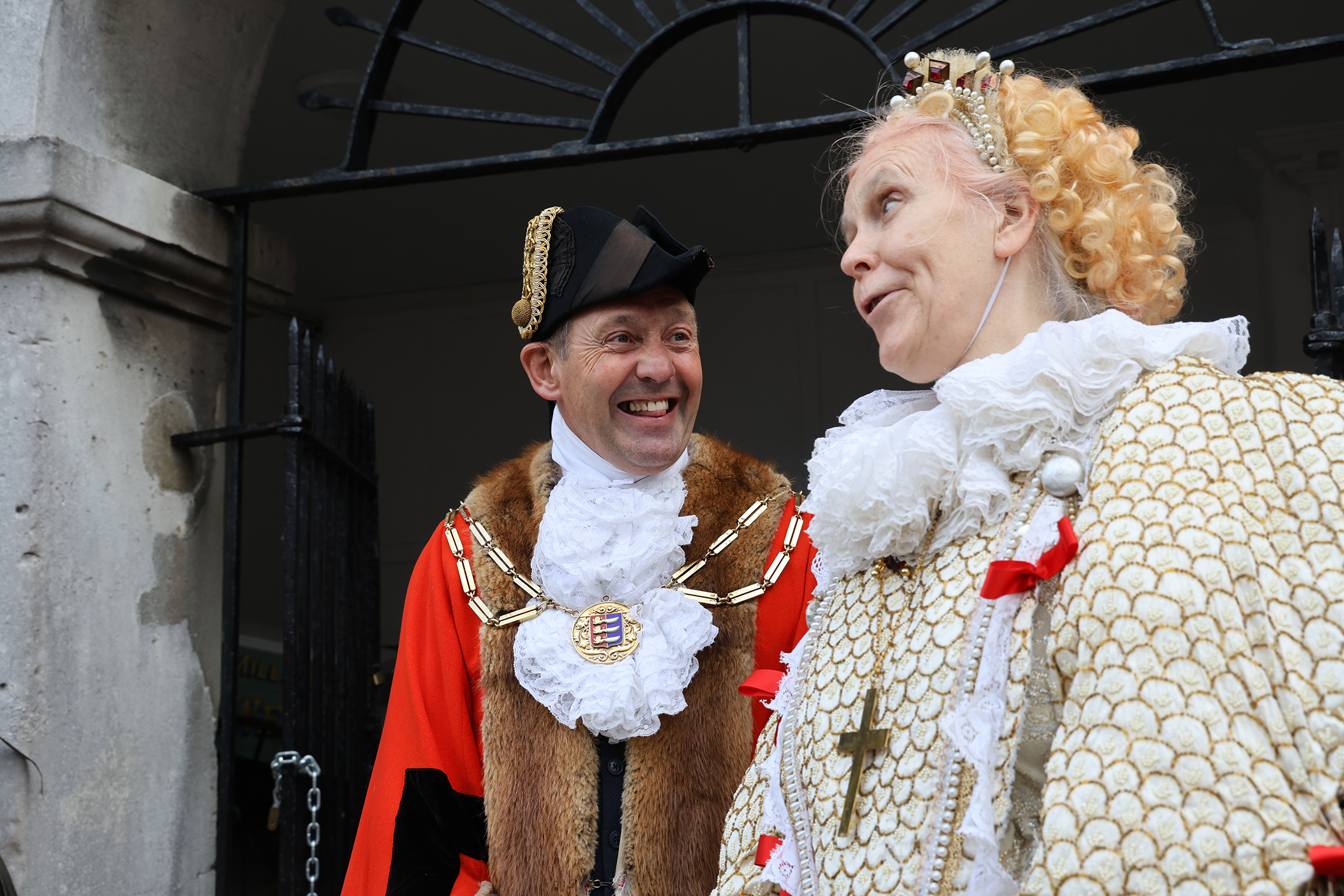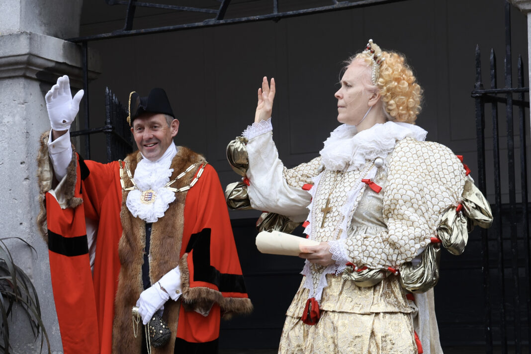 We were both at the town hall to welcome back Queen Elizabeth I for the re-enactment of her visit 450 years ago. It was fantastic to see so many people taking part in this from actors, to musicians, our drummers and the town crier and his deputy all acting the part, all coming together for a multi-media arts event of local, talented people across the town. It is not often one is outdone in mayoral garb but I was very much upstaged by good Queen Bess, plus there was an appearance from King Harry too! The town was also busy with locals and visitors looking on at the spectacle. Congratulations to Simon Parsons and the team at the Heritage Centre for making this happen.