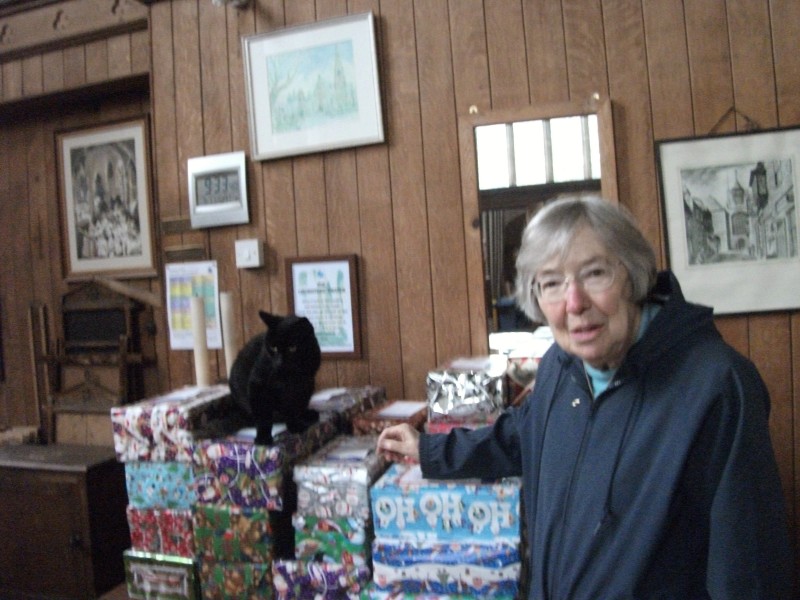 Janet Waddams, who organised the appeal, is pictured above with church cat Sylvester Frost (left).