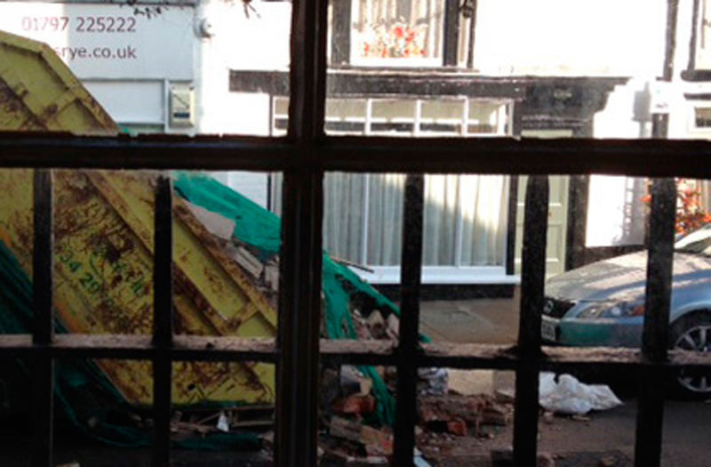 A lorry collecting skips from the cinema development off Lion Street, Rye, shed a load of waste bricks, narrowly missing a parked car on Wednesday morning (September 24). The lorry deposited a green skip outside the Town Hall and then left to pick up a yellow skip. When it returned it put the yellow skip on top of the green skip and proceeded to attempt to pick up both skips in one go.