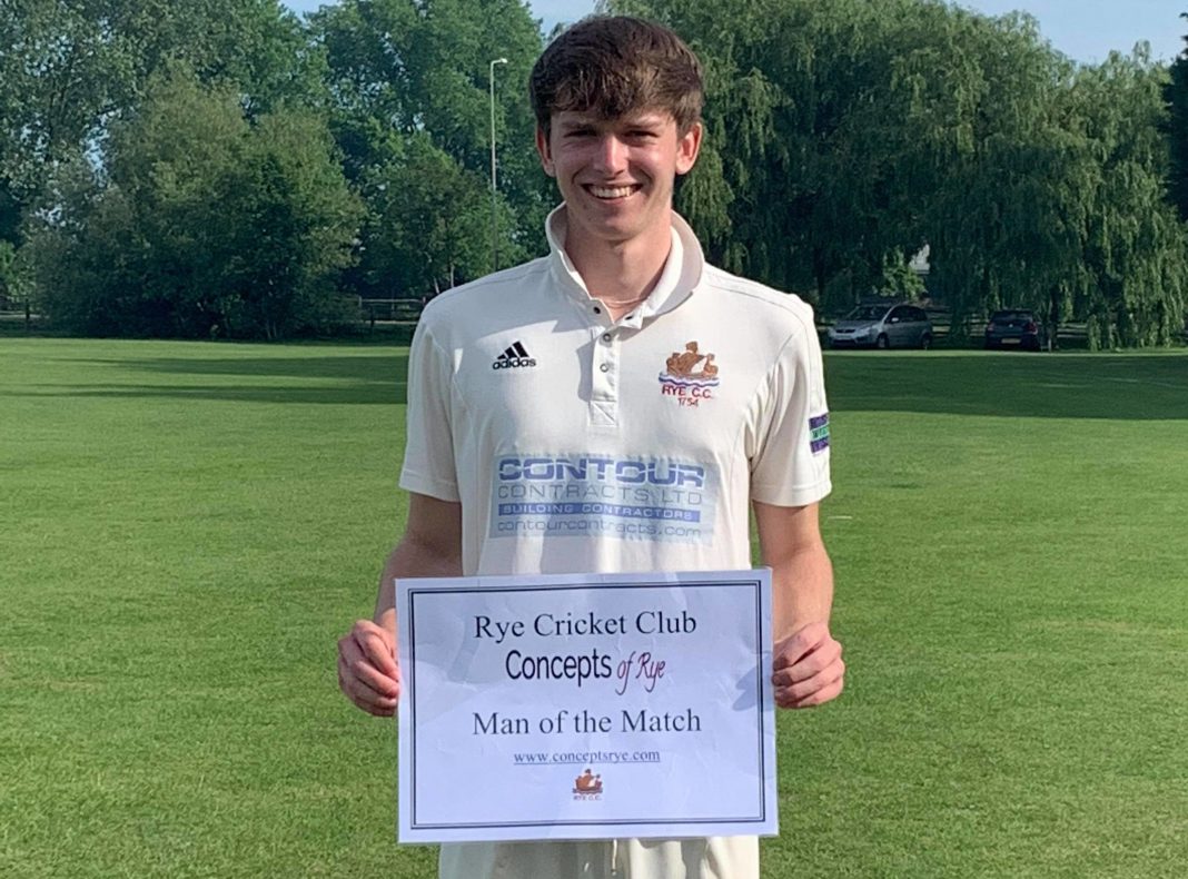 Rye began well with the bat with Harry Smeed (27) and Hamilton (18) putting on 50 for the first wicket, but a mini collapse allowed Rottingdean back into the game. With the score on 98-5, Rye Concepts man of the match Tobias Farrow smashed the ball to all parts scoring a quick fire 34 not out, to see Rye home and conclude a great team performance and a fantastic win.