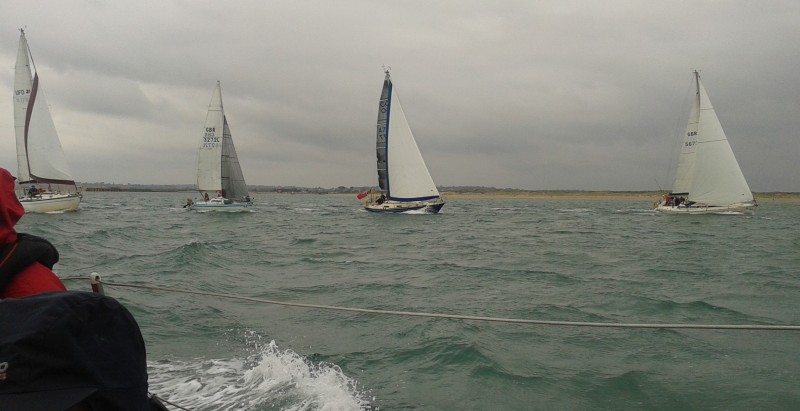 Helena Anne may have been the oldest boat racing, but given the right conditions – and the flat sea and good northerly wind of around 20 knots was just what she needed – she can still show a clean pair of heels to many others. By the time we reached the first mark – the RHSC buoy off Camber – we, in company with Roxanne, (just in front and who was clearly going to be our main competition) had started to draw ahead of the others.