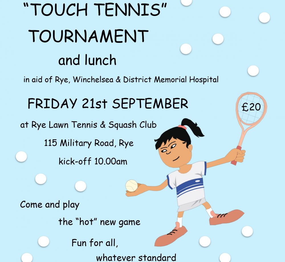 Players are invited to a touch tennis tournament, in aid of Rye, Winchelsea & District Memorial Hospital, at Rye Lawn Tennis Club on Friday September 21.