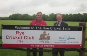 Rye Cricket Club is also proud to announce it has secured sponsorship with Heringtons the Solicitors, who have offices in Rye, Battle, Hastings and Eastbourne. The sponsorship is in place for the next three years, and the picture is of Richard Fisher of Heringtons and Club Secretary Martin Blincow, with the new sign at the entrance to The Rye Cricket Salts.