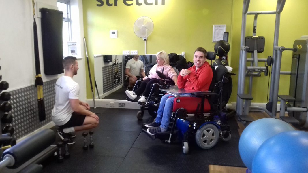 Encompass Care received £500 from Magic Little Grants towards buying a minibus so that the members could attend the gym and the photo above shows Cassie Young and Liam Wright with personal trainer Marcus Popple at the Rye Freedom Leisure Centre.