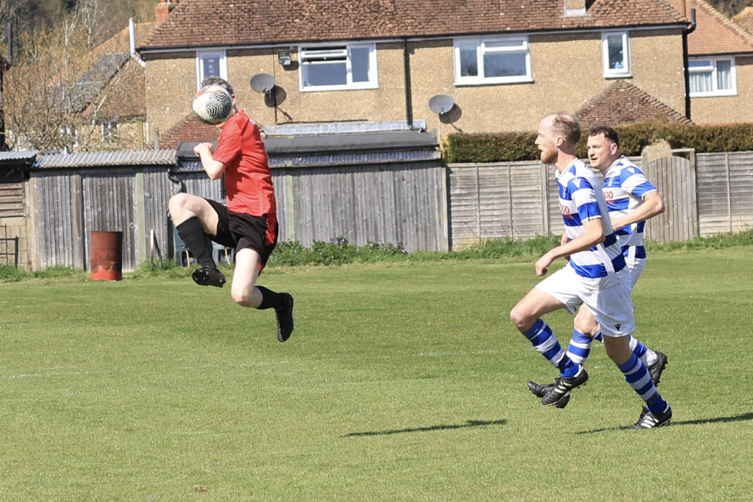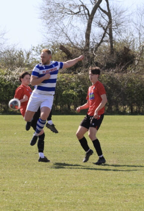 Another Punnetts penalty was blazed over the bar, and again it did not take us long to punish them, a wicked ball into the box from Charlie allowing Dan, whose neck must resemble a crash test dummy, to score a superb header.