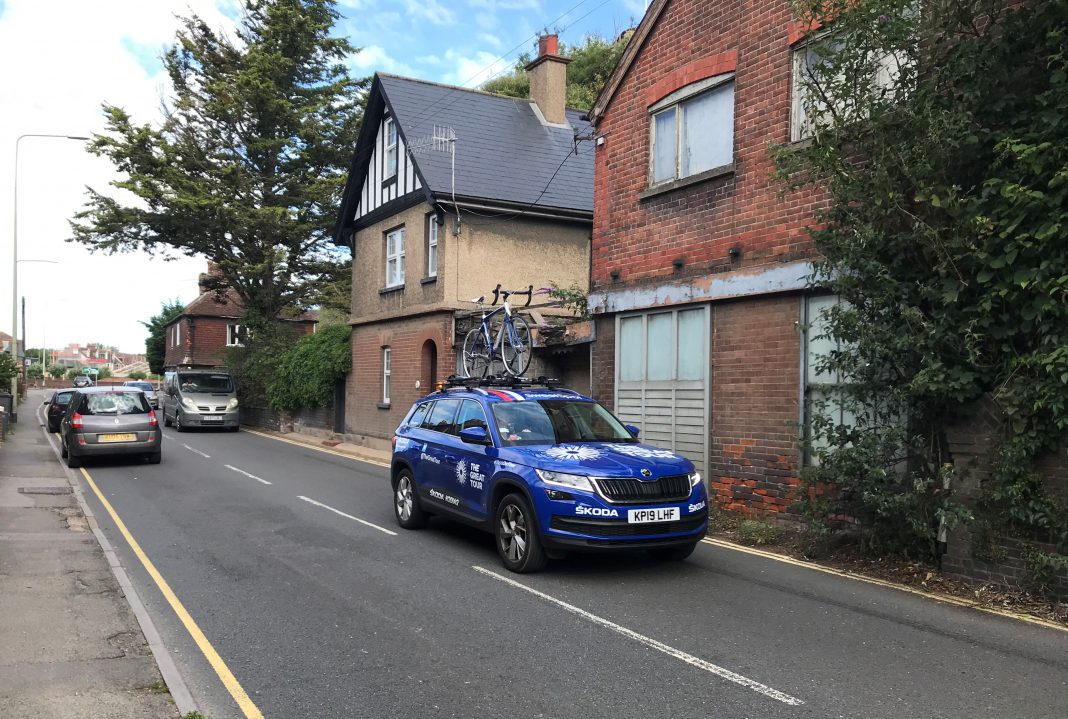On Tuesday they cycled from Rye to Broadstairs, 106km, just missing our photographer – who did snap their support vehicle (above) – starting at 8:30am from wherever their overnight “home” had parked and finishing at 4pm off Joss Gap Road in Broadstairs.