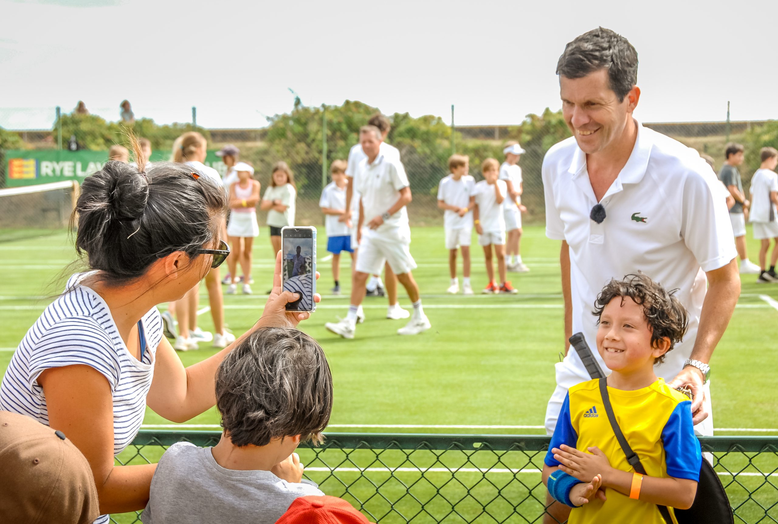 Tennis legend Tim Henman meets some young fans at Rye Lawn Tennis Club